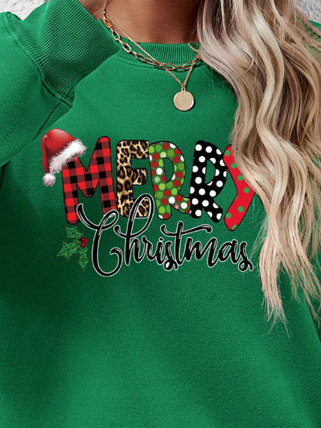 MERRY CHRISTMAS Round Neck Dropped Shoulder Sweatshirt