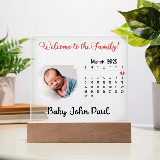 Newborn Baby acrylic plaque - Battery Powered LED Base is backordered and will ship as soon as it is back in stock.