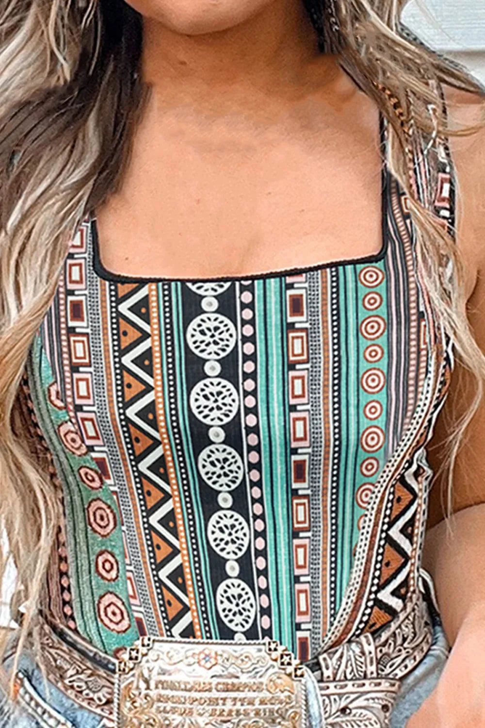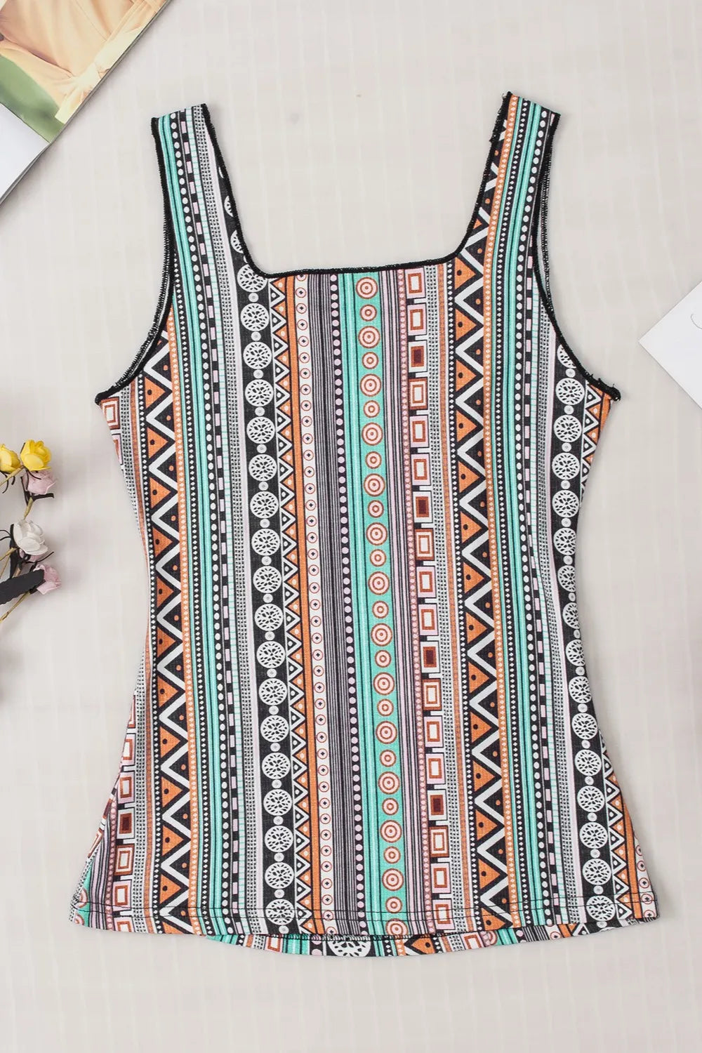 Printed Square Neck Wide Strap Tank - Multicolor / S is backordered and will ship as soon as it is back in stock.