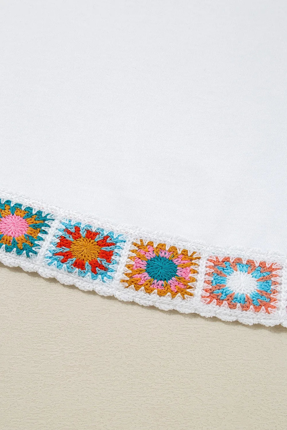 Floral Crochet Patched Ruffled Sleeve Crewneck Blouse