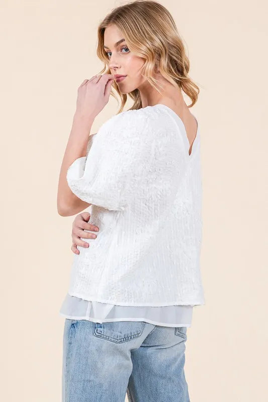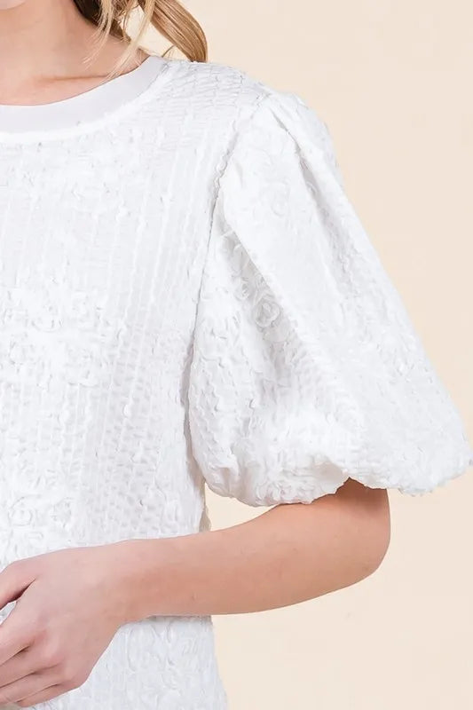 Lime 'N' Chili Floral Textured Puff Sleeve Top - WHITE / S is backordered and will ship as soon as it is back in stock.
