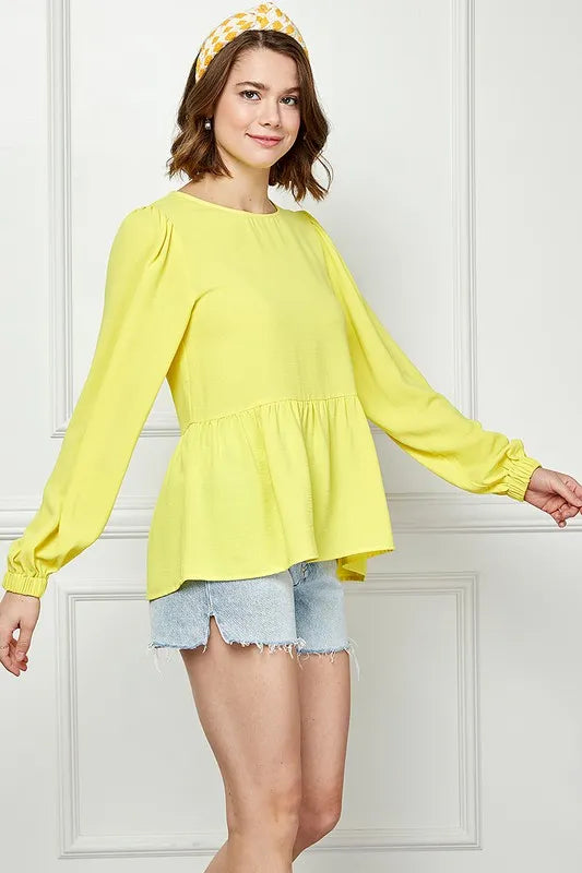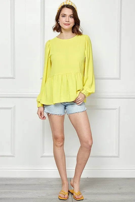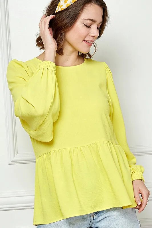 Lime 'N' Chili Round Neck Ruffle Hem Balloon Sleeve Blouse