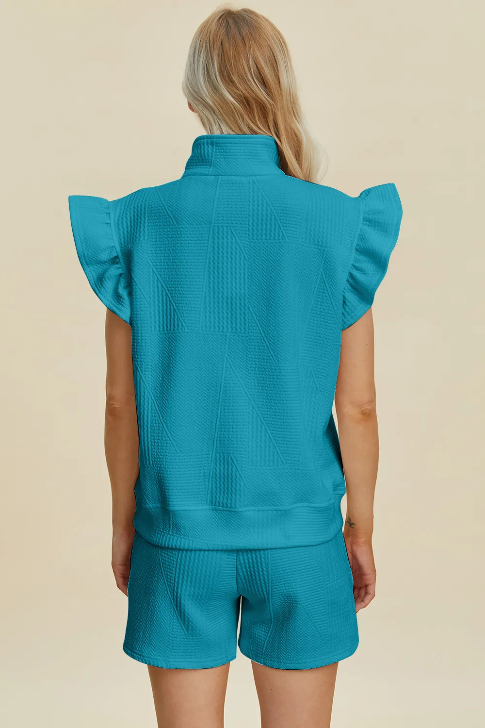 Double Take Full Size Texture Flounce Sleeve Top and Shorts Set