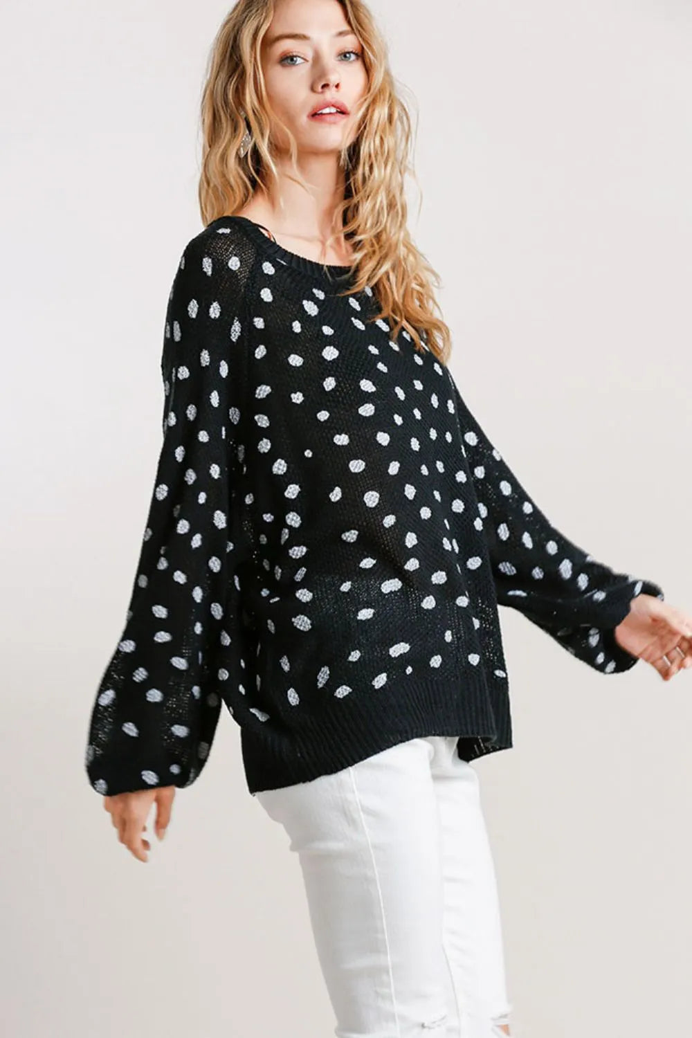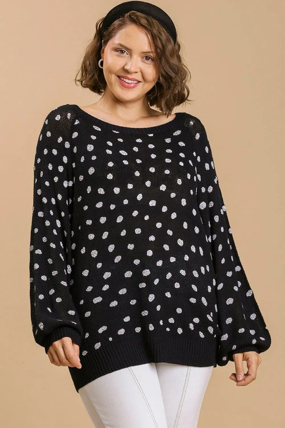 Umgee Full Size Dalmatian Hand Stamped Round Neck Sweater Plus Size