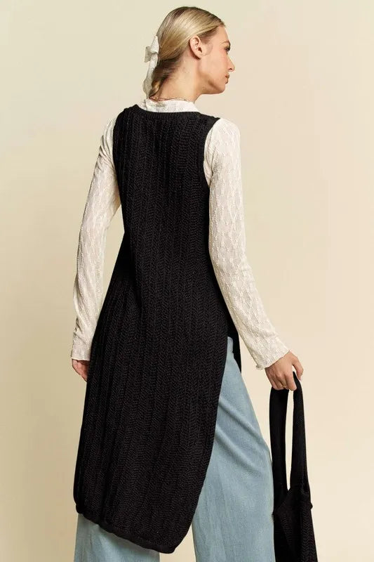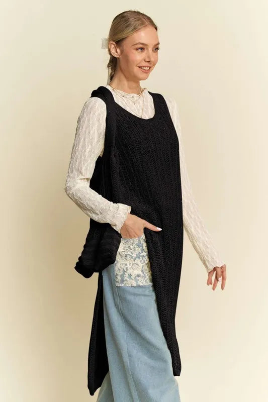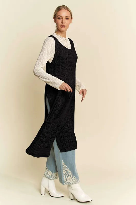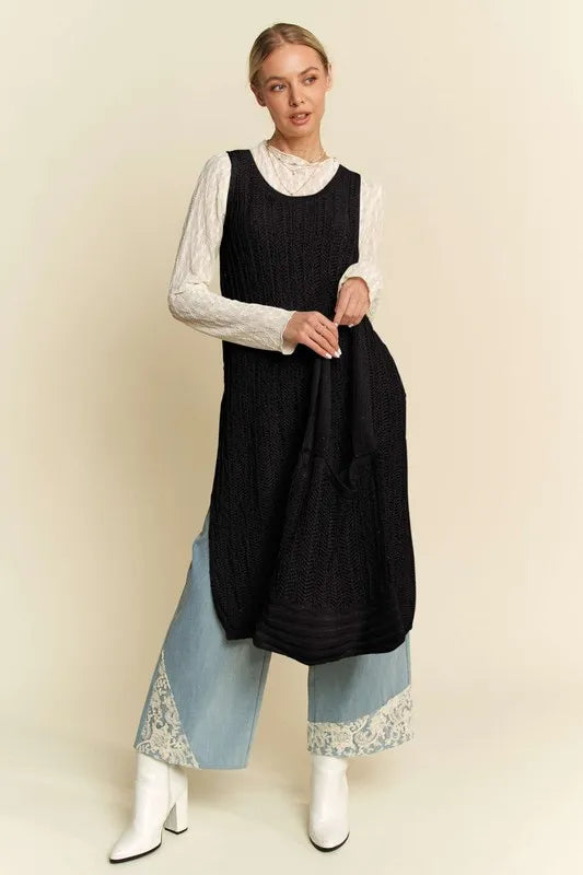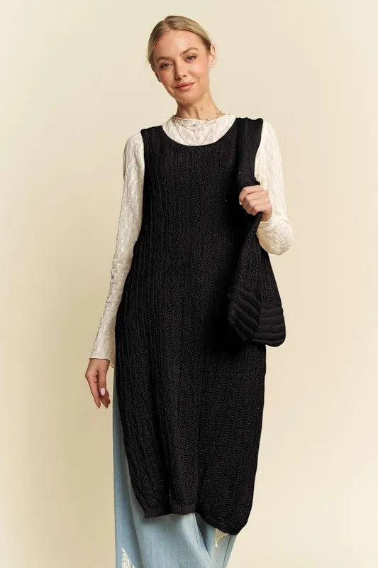 Davi & Dani Knit Side Slit Round Neck Sleeveless Dress & Bag