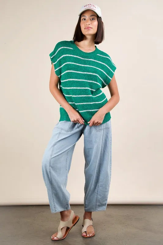 VERY J Striped Knit Sweater Vest Top