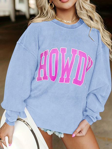 Full Size HOWDY Graphic Round Neck Sweatshirt