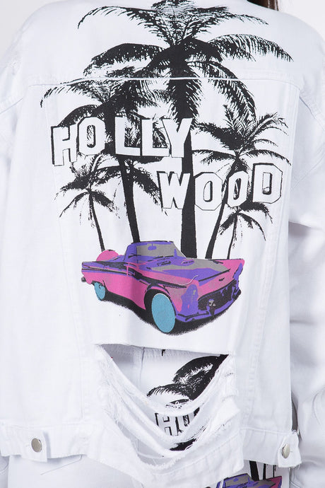 American Bazi Graphic Distressed Long Sleeve Denim Jacket
