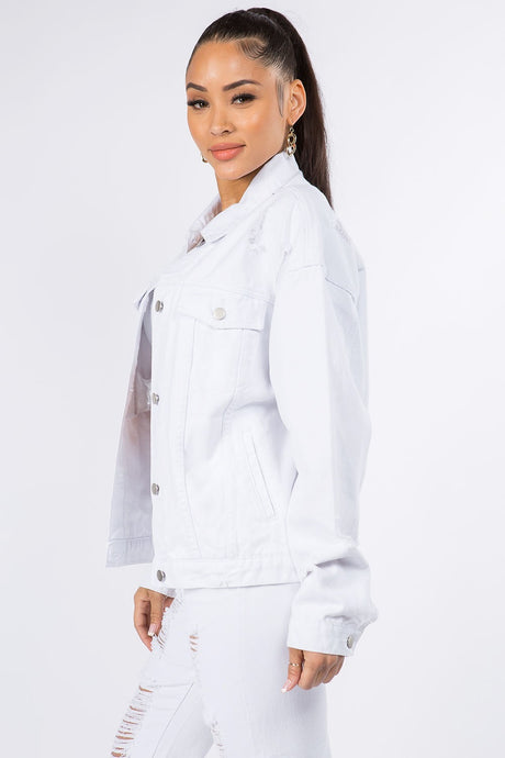 American Bazi Frayed Hem Distressed Denim Jacket
