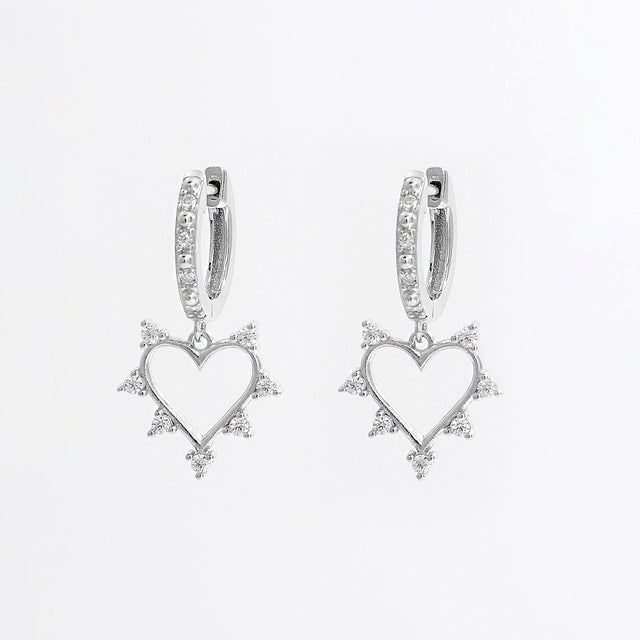 925 Sterling Silver Inlaid Zircon Heart Dangle Earrings