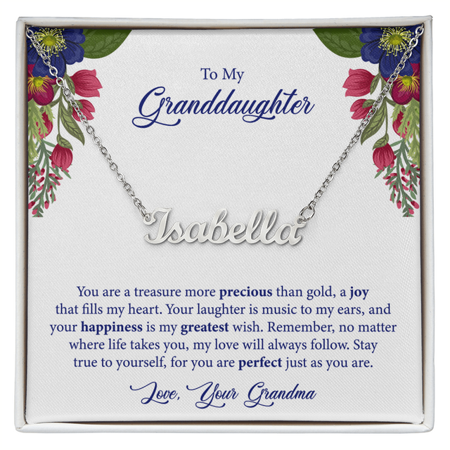 This stylish necklace features a cursive name design suspended on an 16”-18” adjustable cable chain, making it both personal and beautiful! Your necklace will be custom made upon ordering in the name or word of your choice, with up to 10 characters.  It's a gift that they will surely want to keep close to their heart forever!