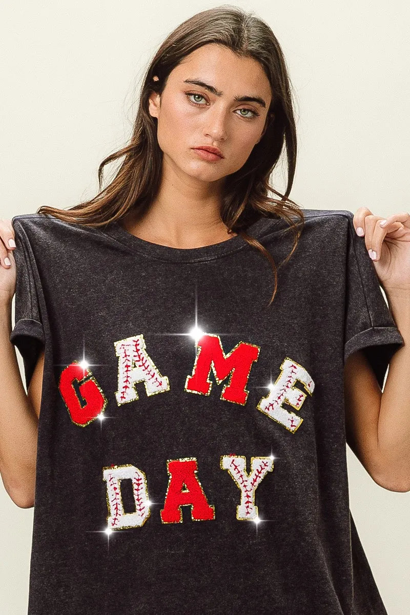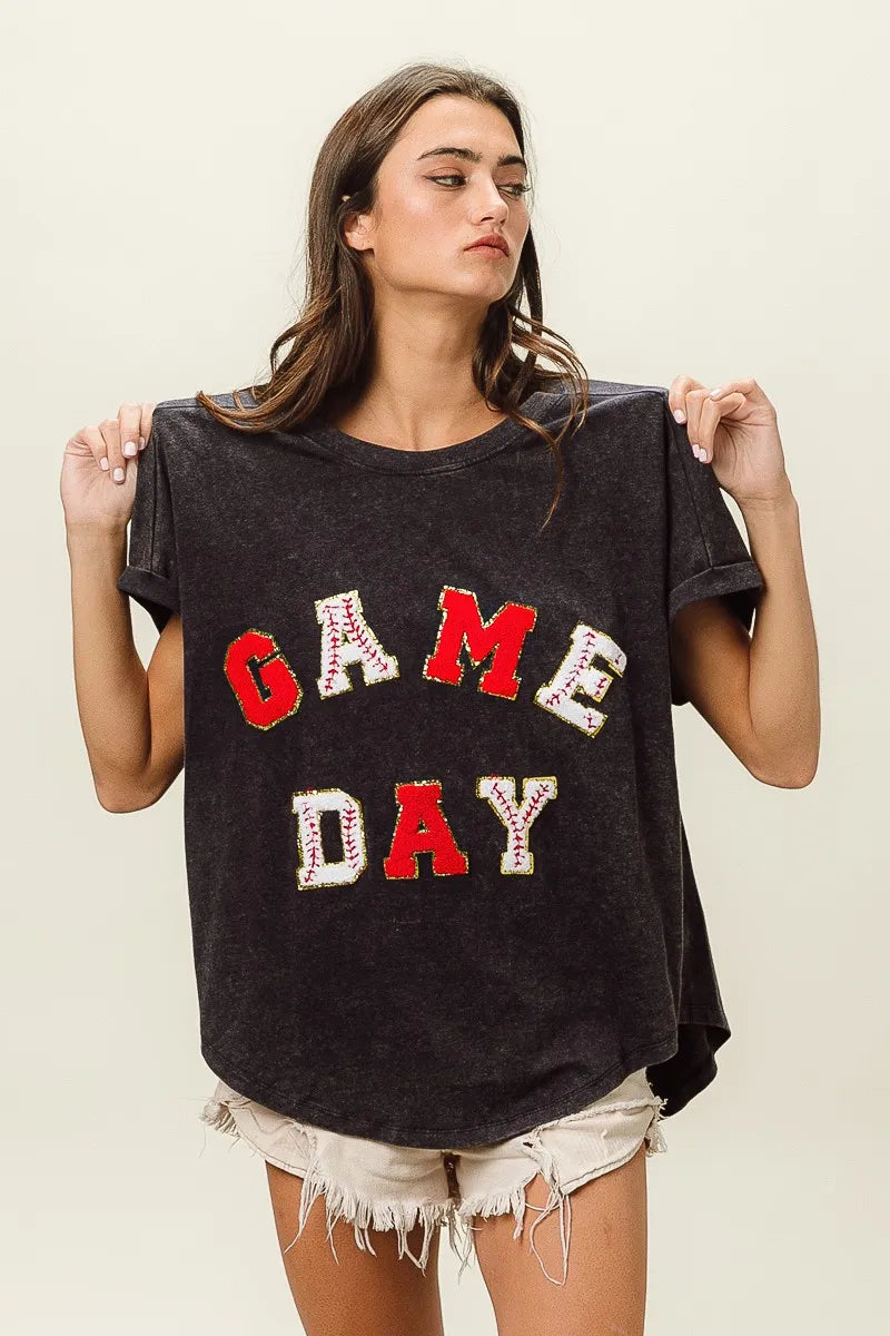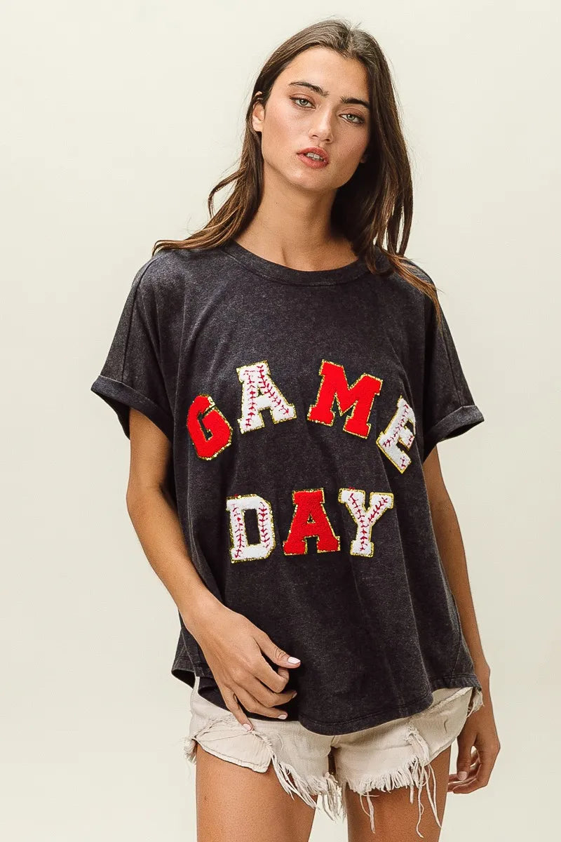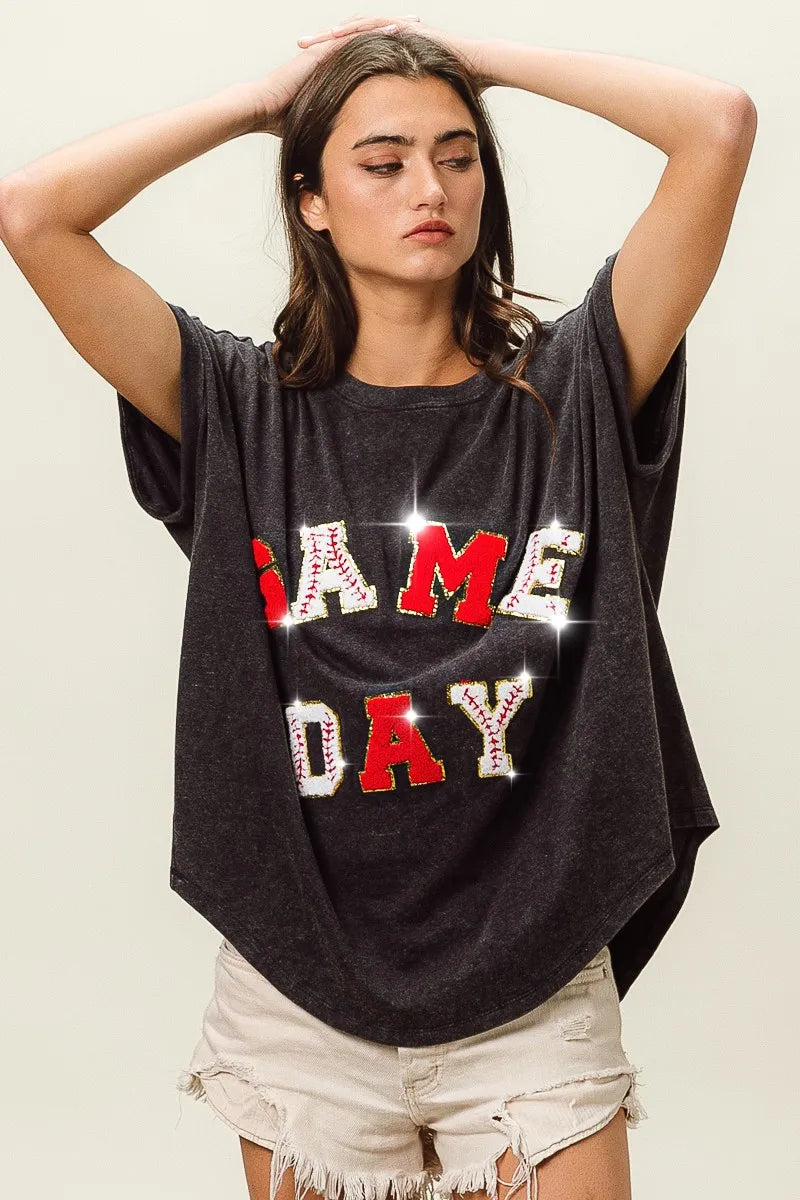 BiBi Baseball Gameday Patches Washed Short Sleeve Top