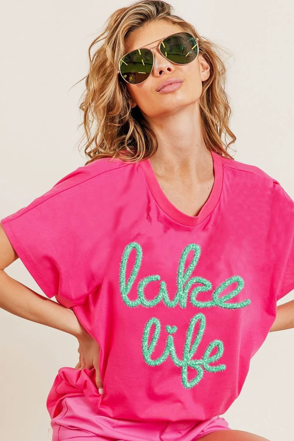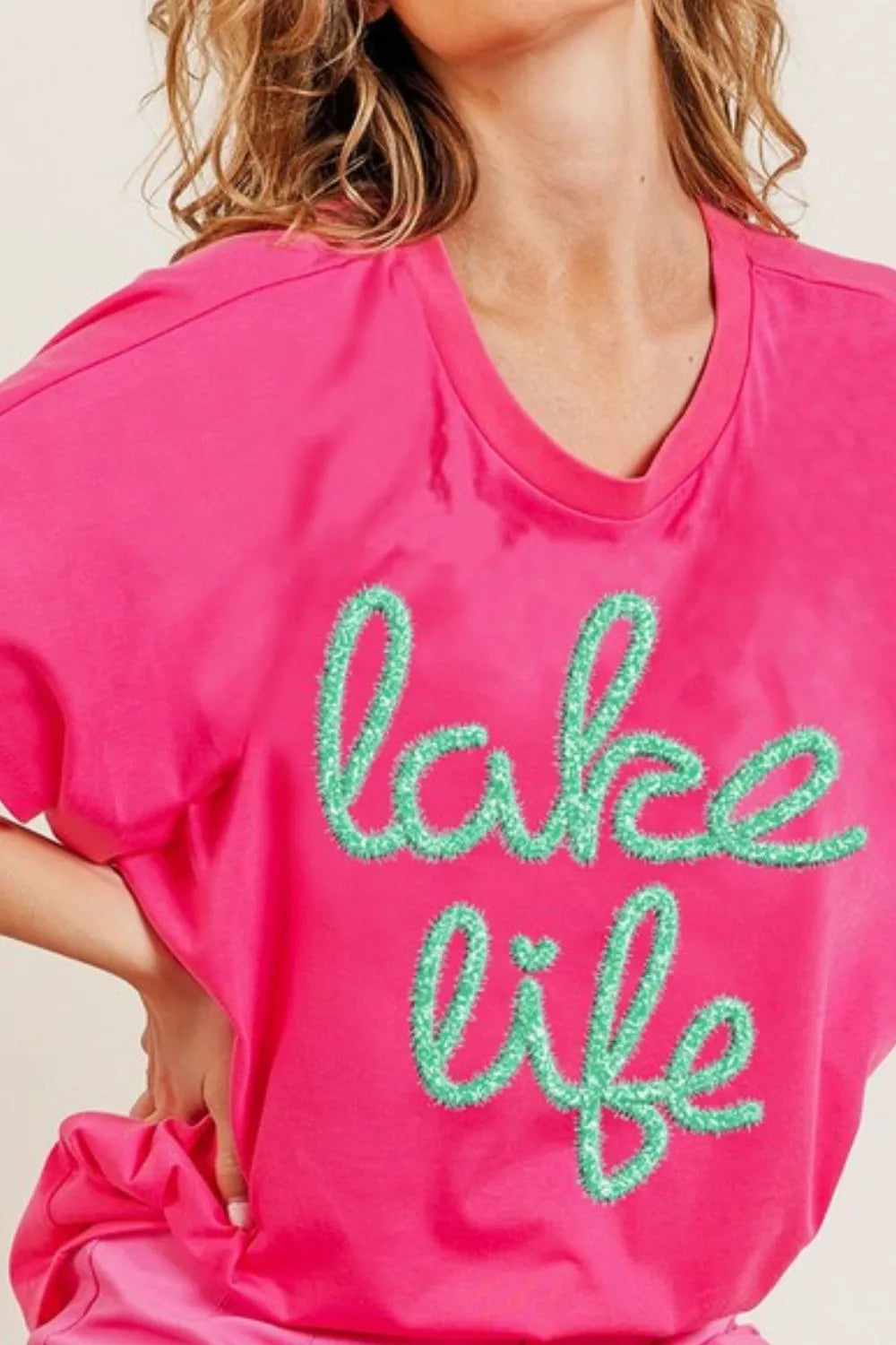 BiBi Metallic Letter Short Dolman Sleeve Top - FUCHSIA / S está agotado y se enviará tan pronto como vuelva a estar disponible.