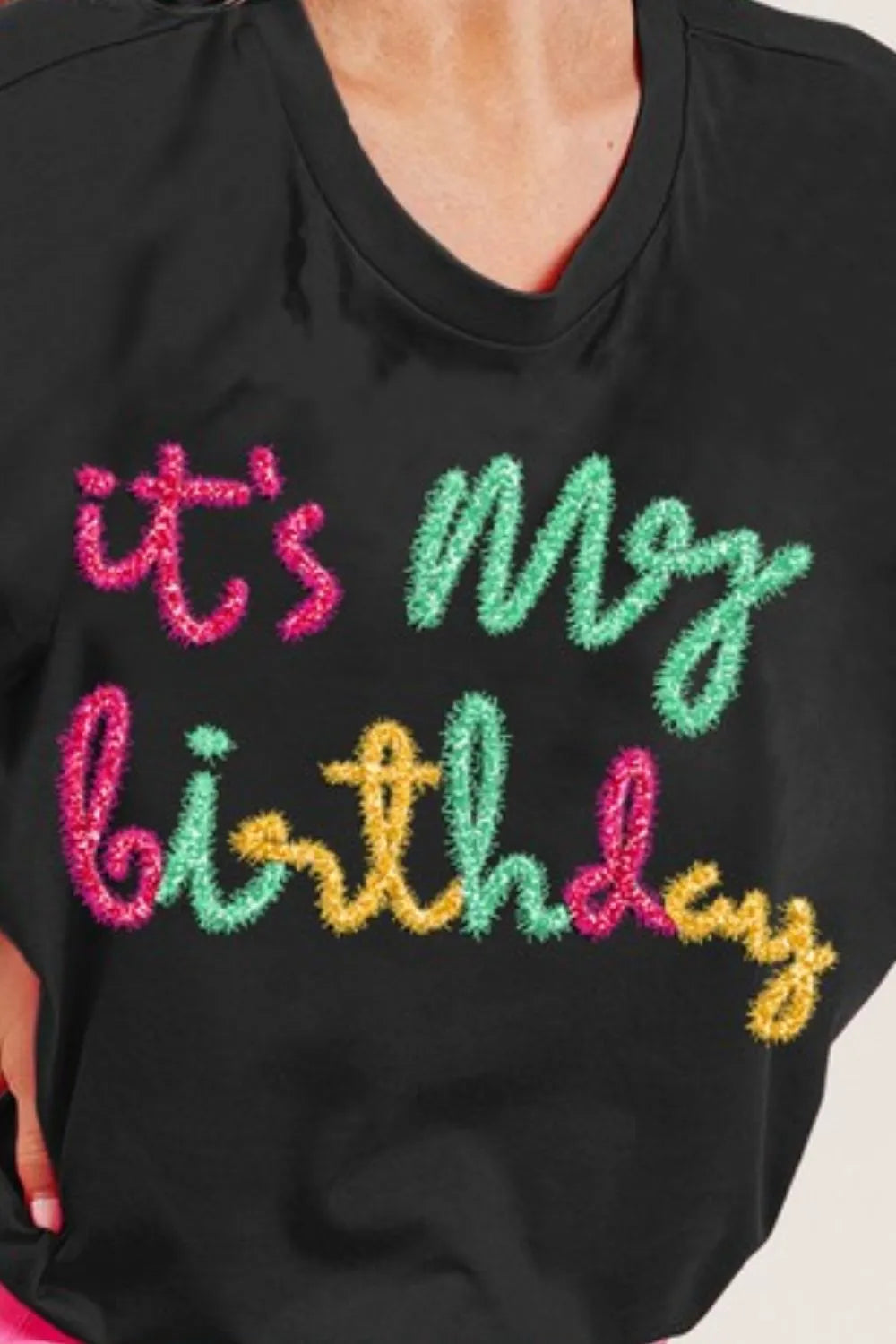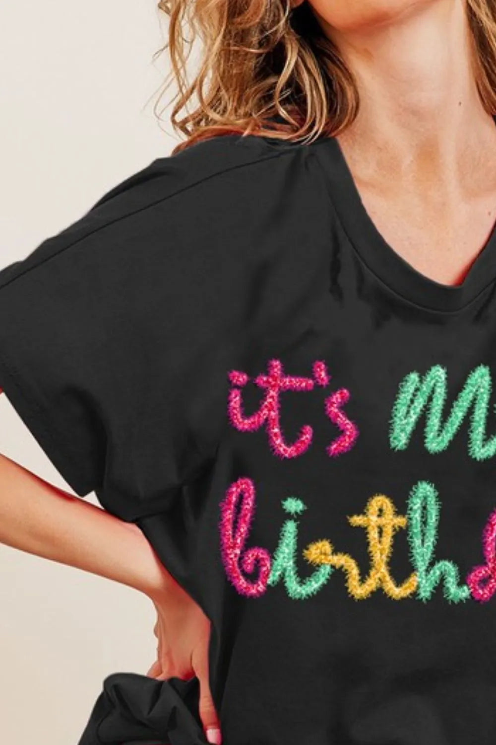 BiBi Metallic Letter Short Dolman Sleeve Top