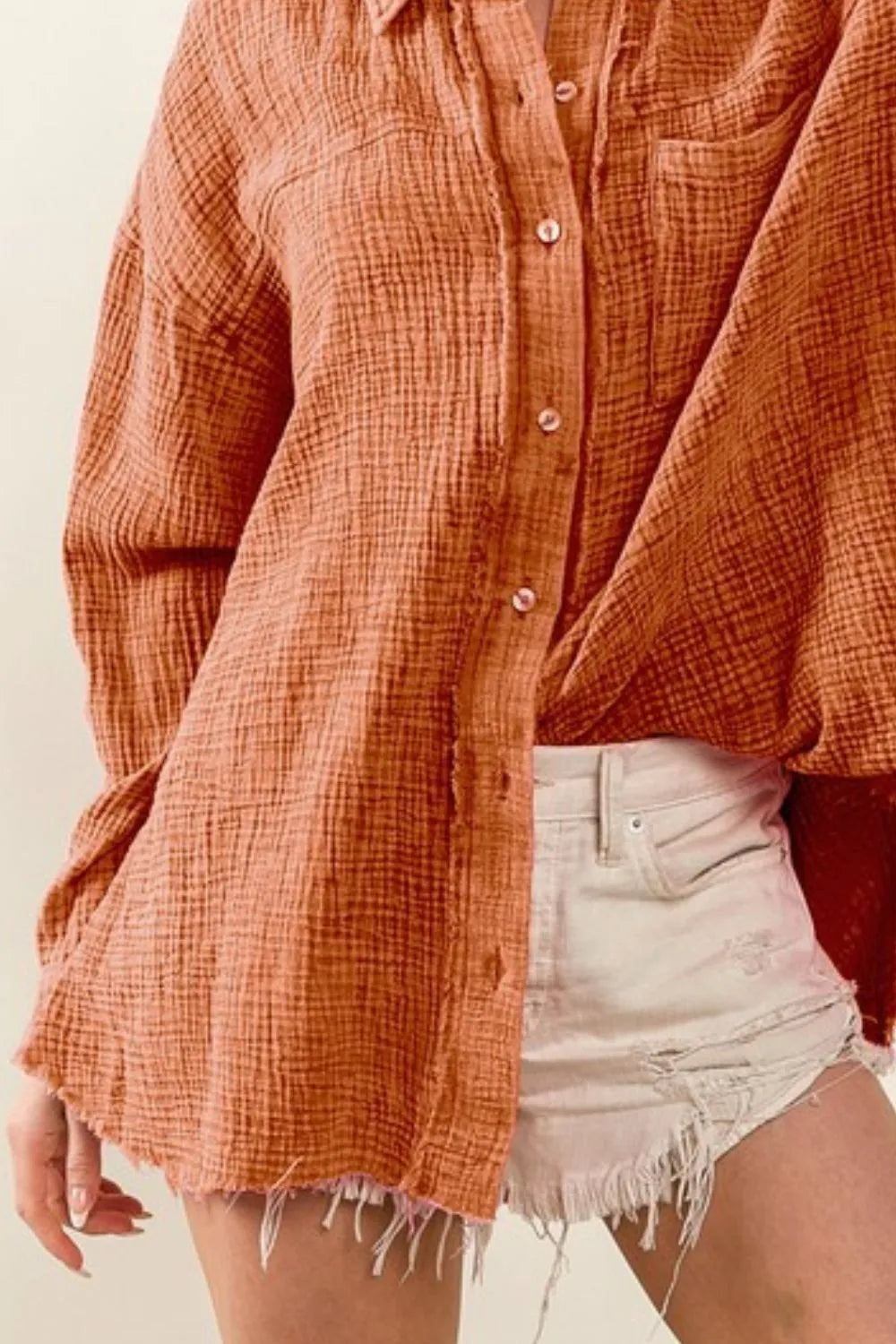 BiBi Raw Edge Detailed Mineral Washed Loose Fit Shirt - VINTAGE BRICK / XL está agotado y se enviará tan pronto como vuelva a estar disponible.