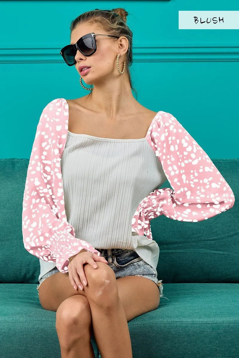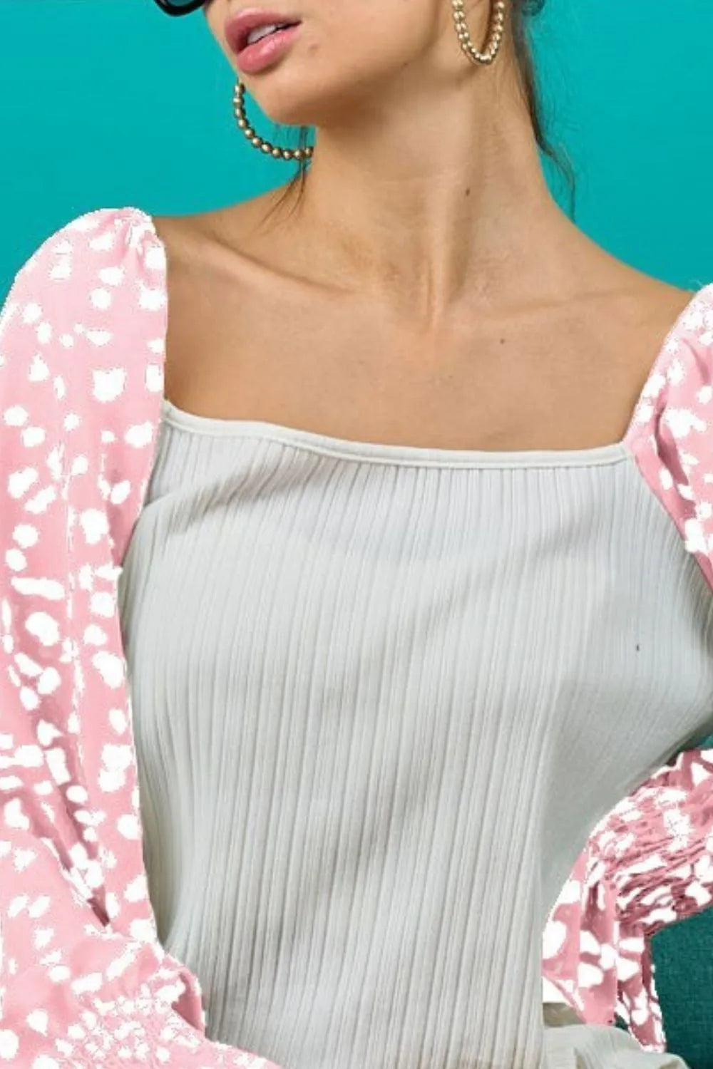 This ribbed top is designed with leopard printed long sleeves for a stylish and on-trend look. The ribbed texture adds depth and dimension to the top, while the leopard print sleeves provide a bold and eye-catching contrast. Made with high-quality fabric, this top offers both comfort and fashion-forward flair. Elevate your wardrobe with this chic and versatile top that effortlessly combines texture and print for a unique and modern outfit.