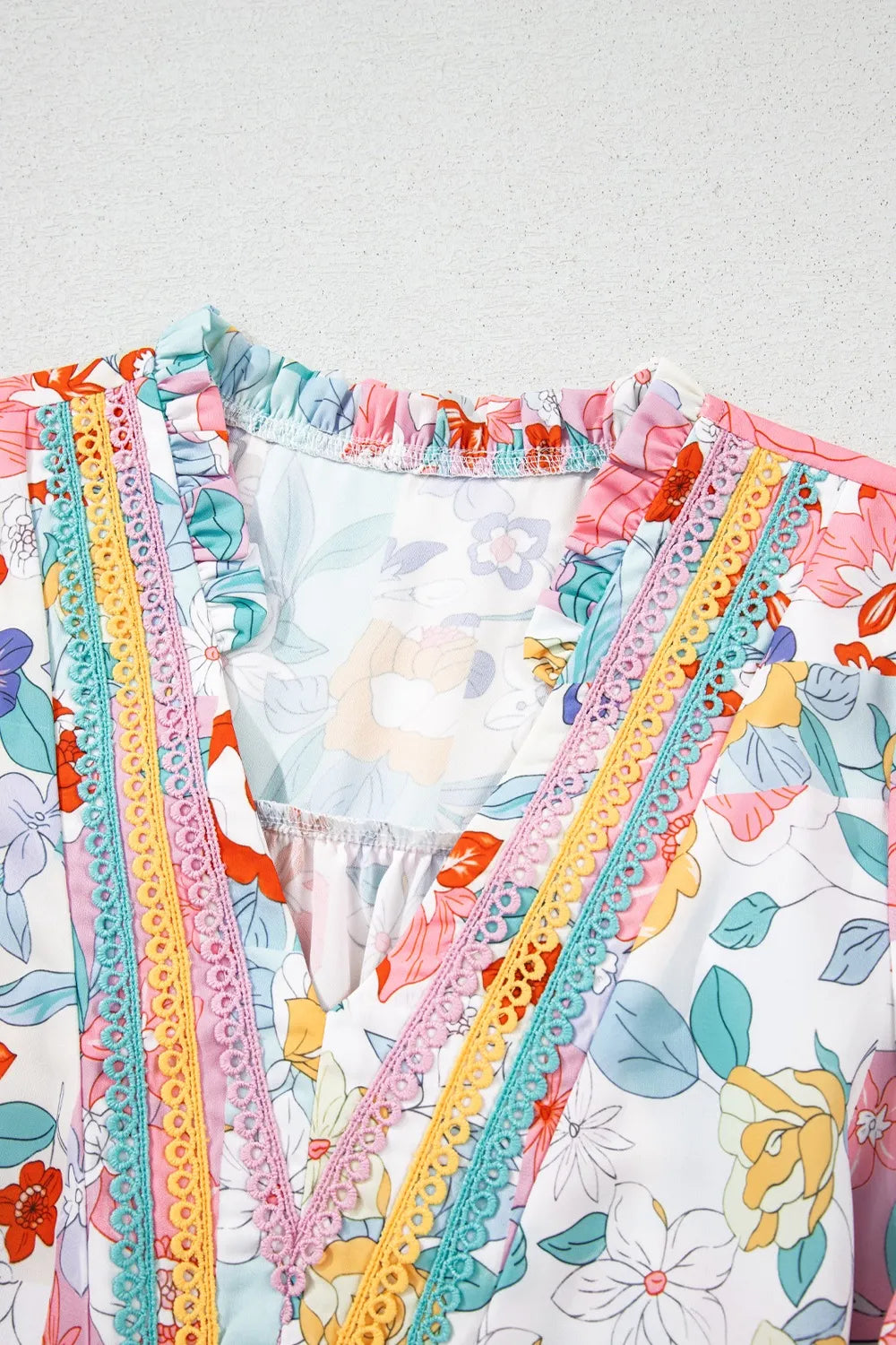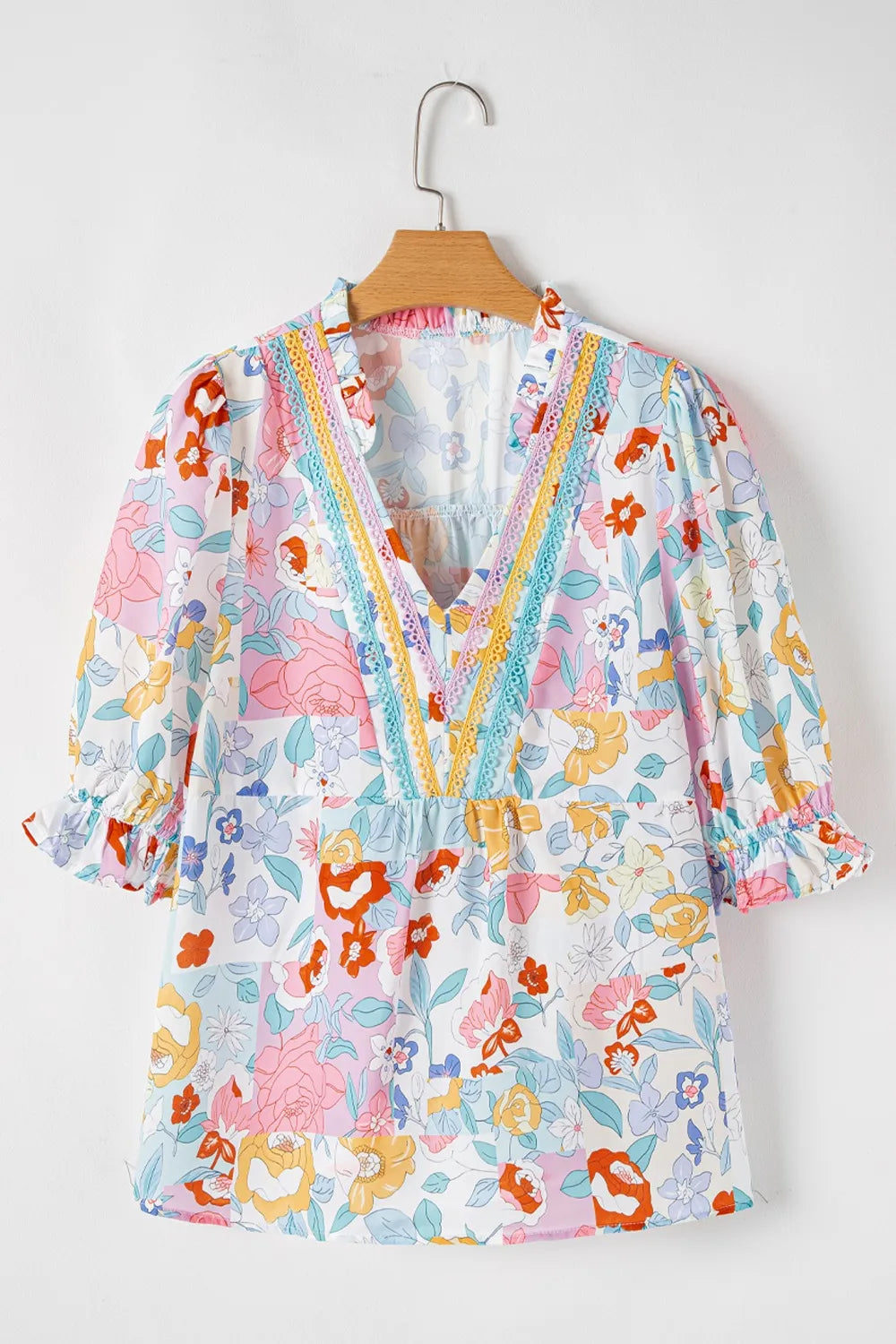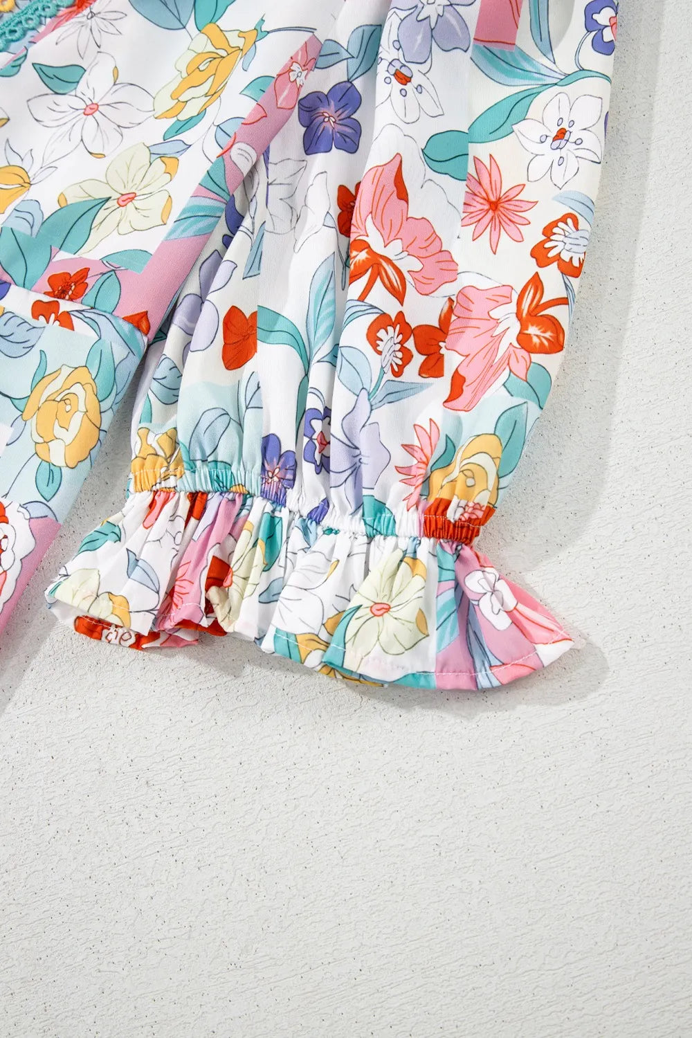 Boho Flower Print Half Puff Sleeve Blouse - Floral / S está agotado y se enviará tan pronto como vuelva a estar disponible.