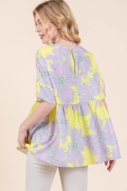 BOMBOM Floral Babydoll Tunic Top - LAVENDER / S está agotado y se enviará tan pronto como vuelva a estar disponible.