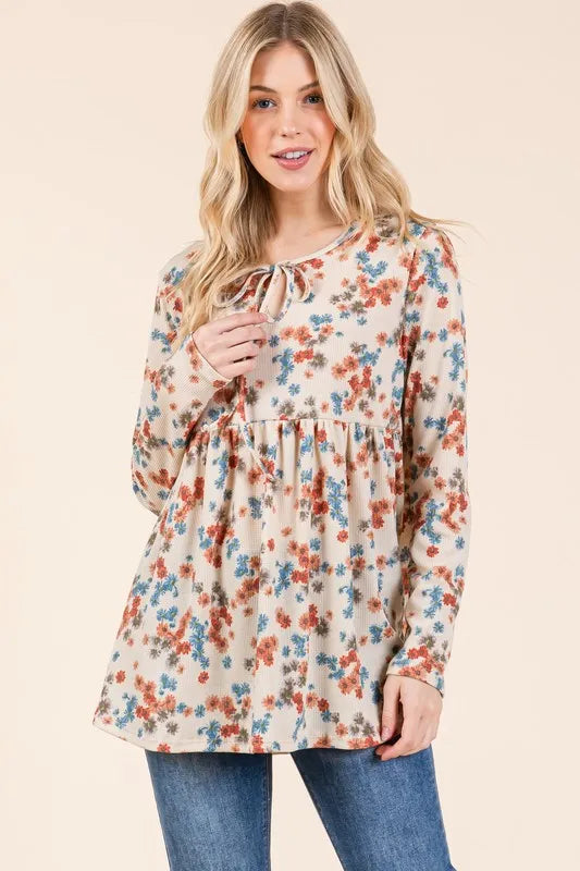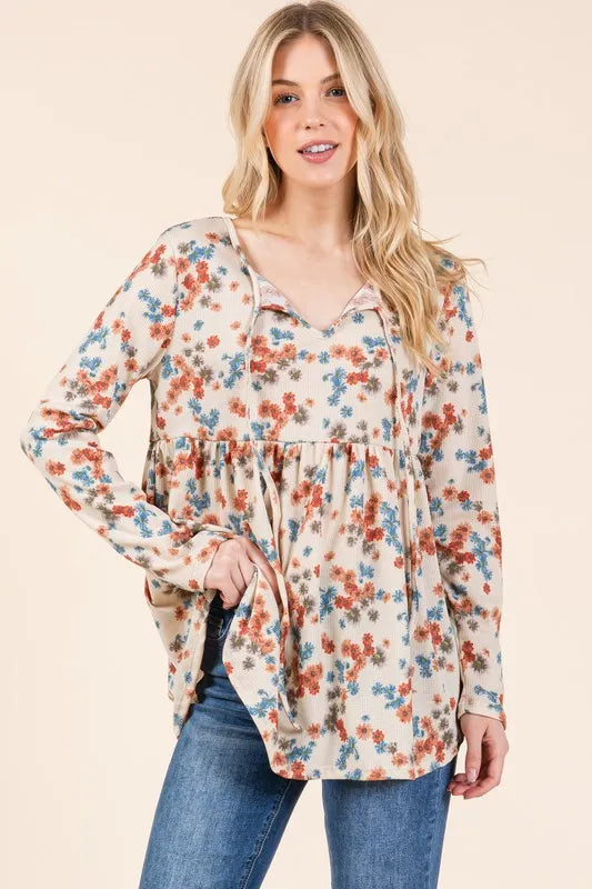 BOMBOM Floral Print Tie Neck Long Sleeve Blouse - Cream / S está agotado y se enviará tan pronto como vuelva a estar disponible.
