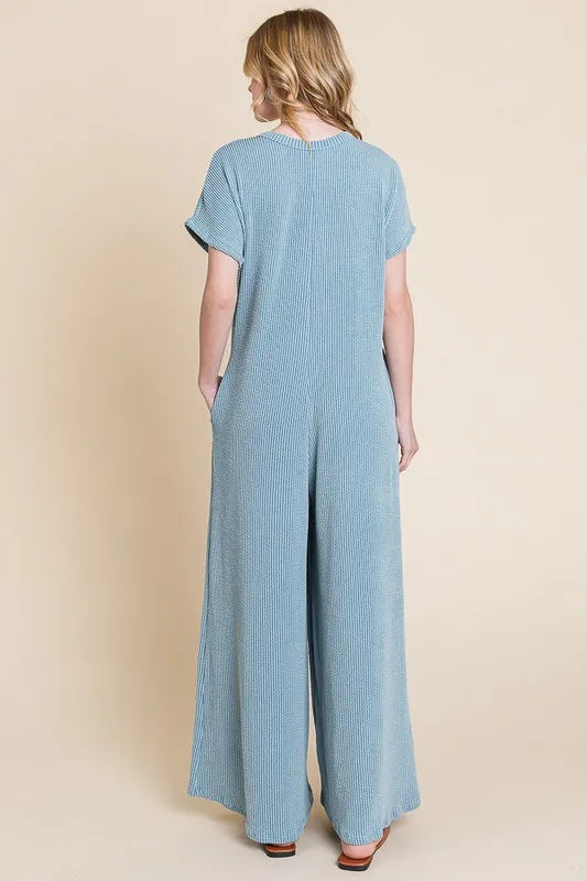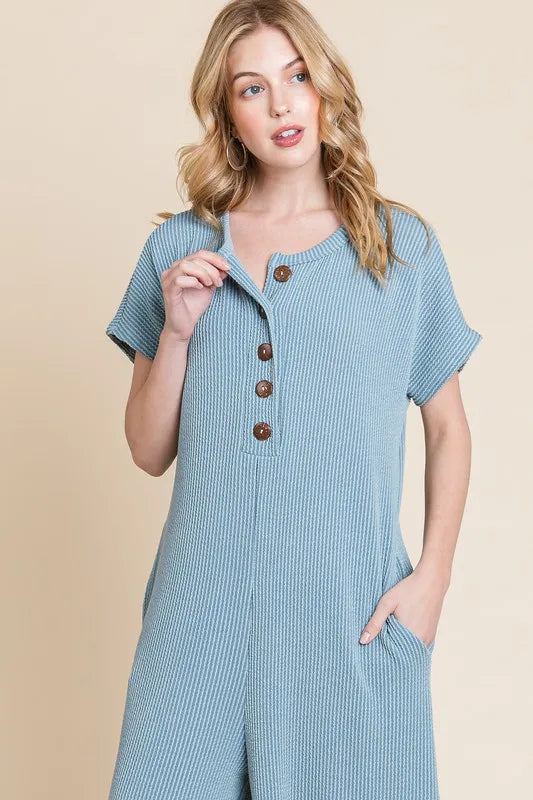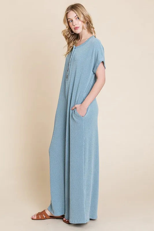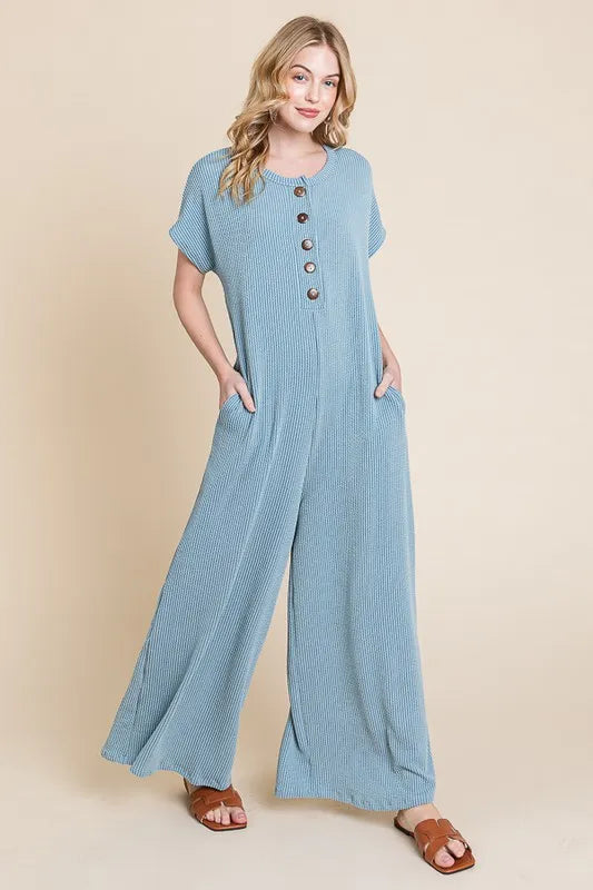 BOMBOM Rib Knit Jumpsuit with Button Detail