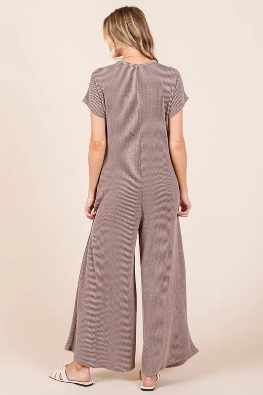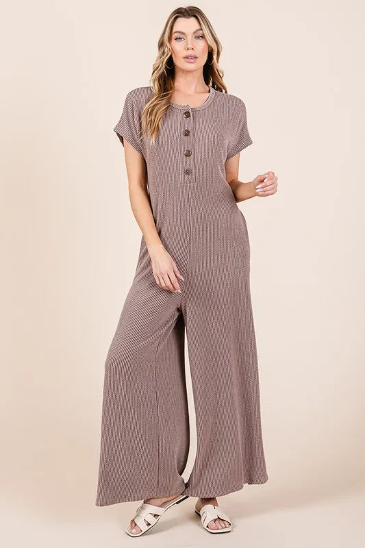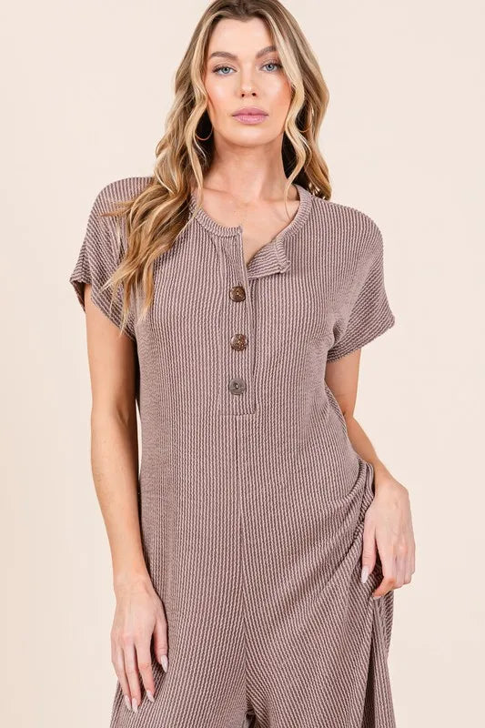 BOMBOM Rib Knit Jumpsuit with Button Detail