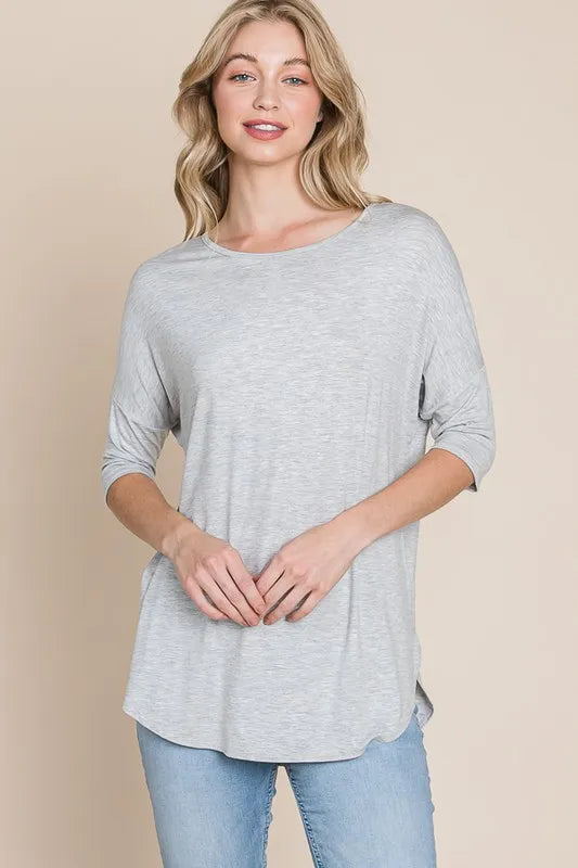 The round neck half sleeve t-shirt is a simple yet versatile wardrobe staple. With its classic round neckline and flattering half sleeves, this t-shirt offers a timeless and effortless style. It can be easily paired with various bottoms and accessories for a casual and comfortable look.