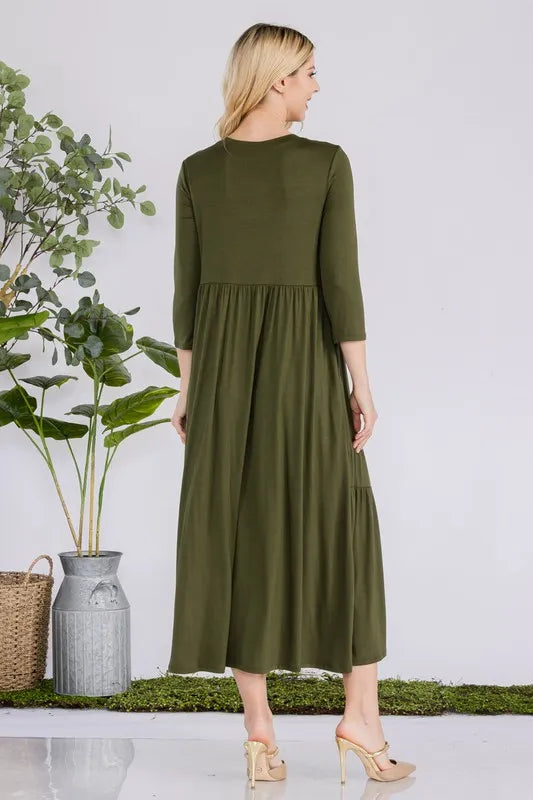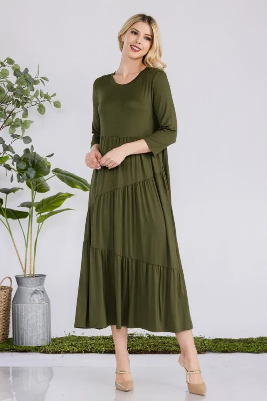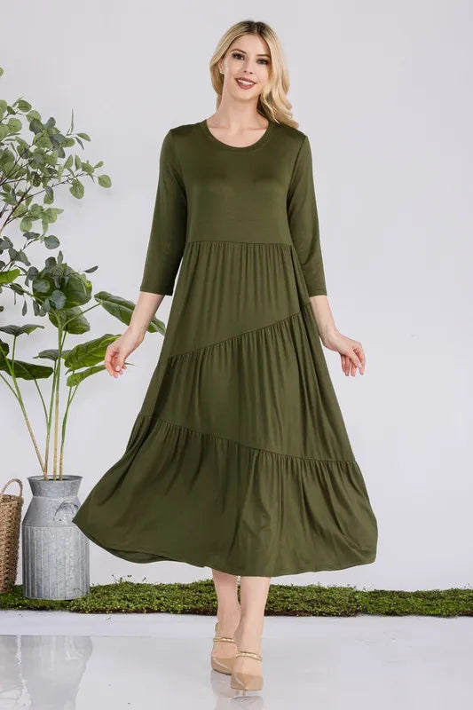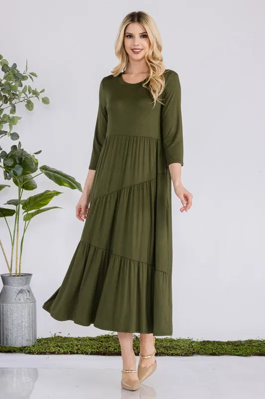 Celeste Full Size Asymmetric Tiered Midi-Dress Plus Size - OLIVE / S está agotado y se enviará tan pronto como vuelva a estar disponible.