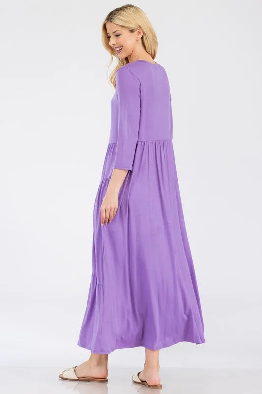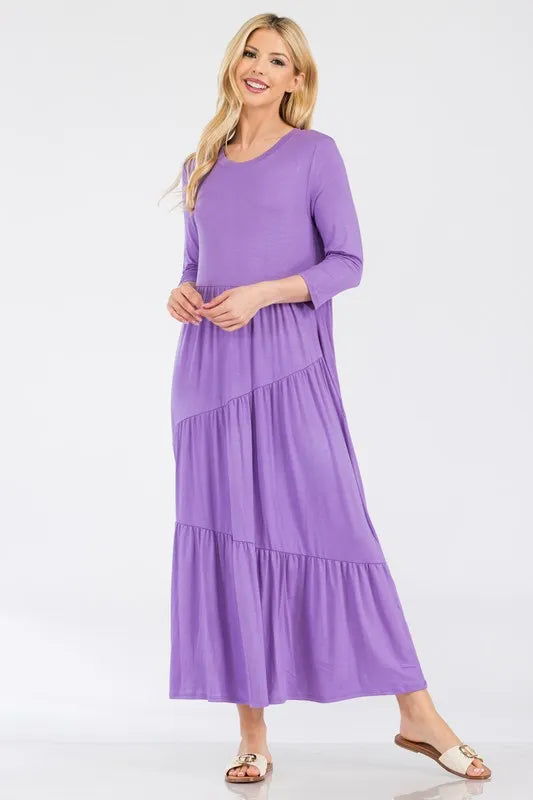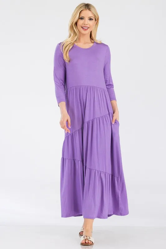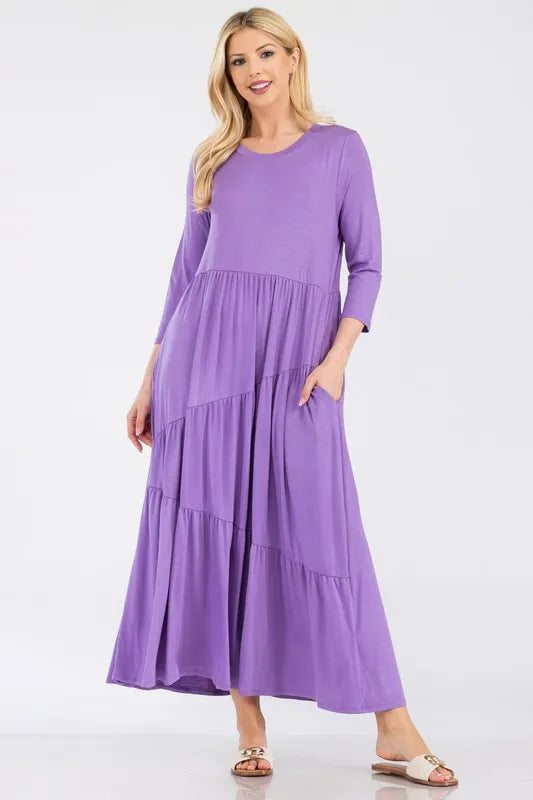 Celeste Full Size Asymmetric Tiered Midi-Dress Plus Size - LILAC / S está agotado y se enviará tan pronto como vuelva a estar disponible.