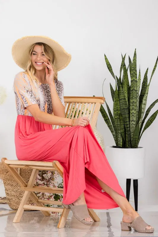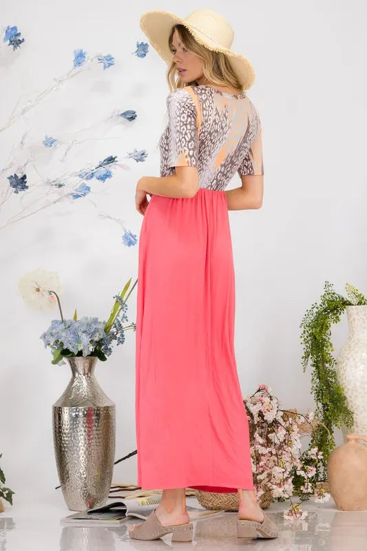 Celeste Full Size Leopard Round Neck Short Sleeve Maxi Dress Plus Size - Strawberry / S está agotado y se enviará tan pronto como vuelva a estar disponible.