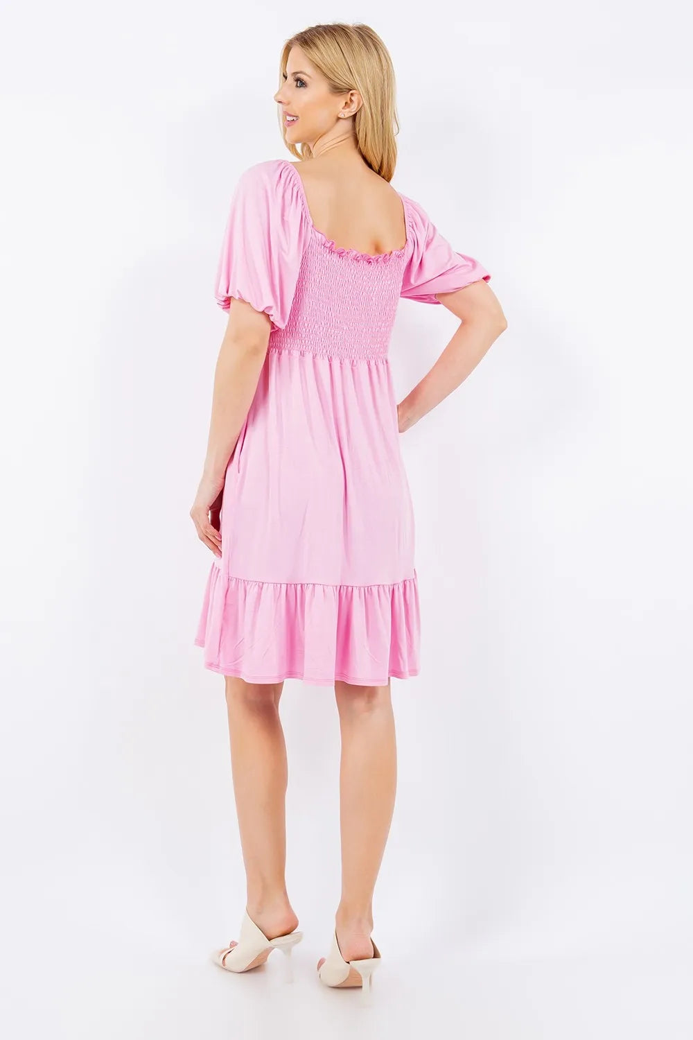 Celeste Full Size Smocked Square Neck Puff Sleeve Ruffle Hem Dress Plus Size