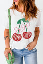 Cherry Round Neck Short Sleeve T-Shirt - White / S está agotado y se enviará tan pronto como vuelva a estar disponible.