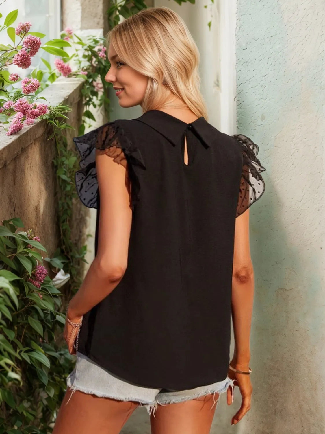 Collared Neck Cap Sleeve Top - Black / XS está agotado y se enviará tan pronto como vuelva a estar disponible.