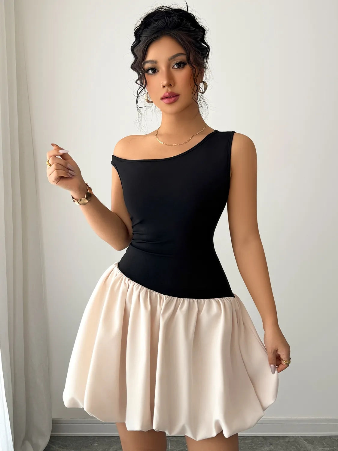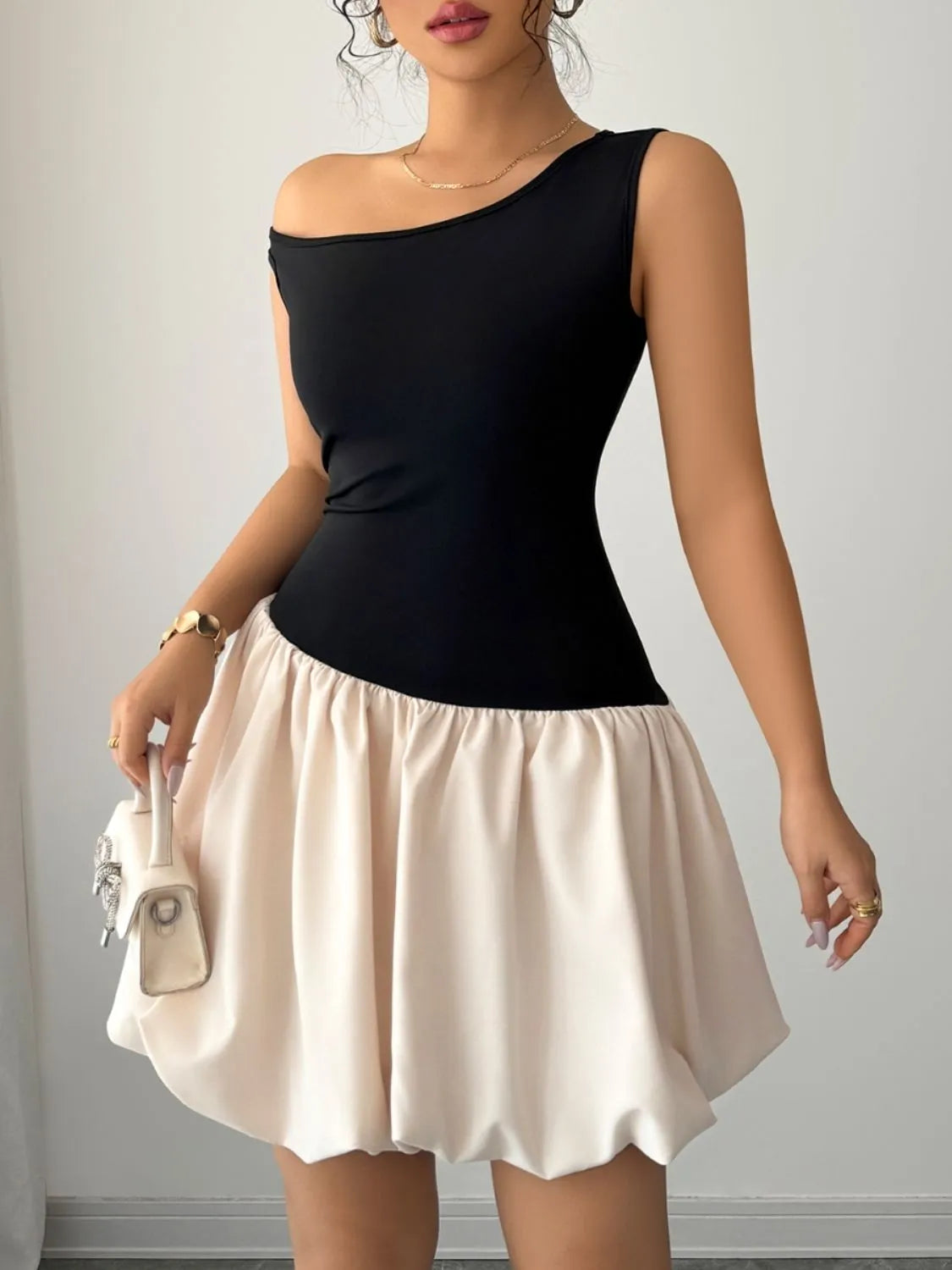 Contrast Single Shoulder Mini Tank Dress - Black / S está agotado y se enviará tan pronto como vuelva a estar disponible.