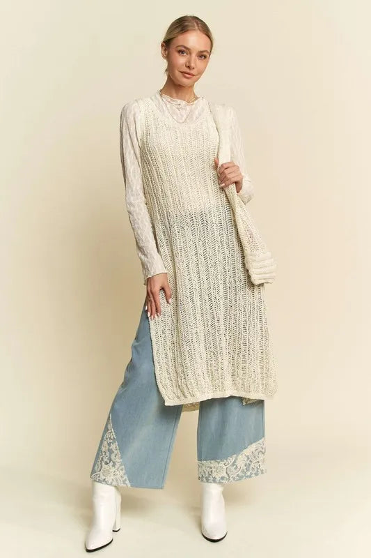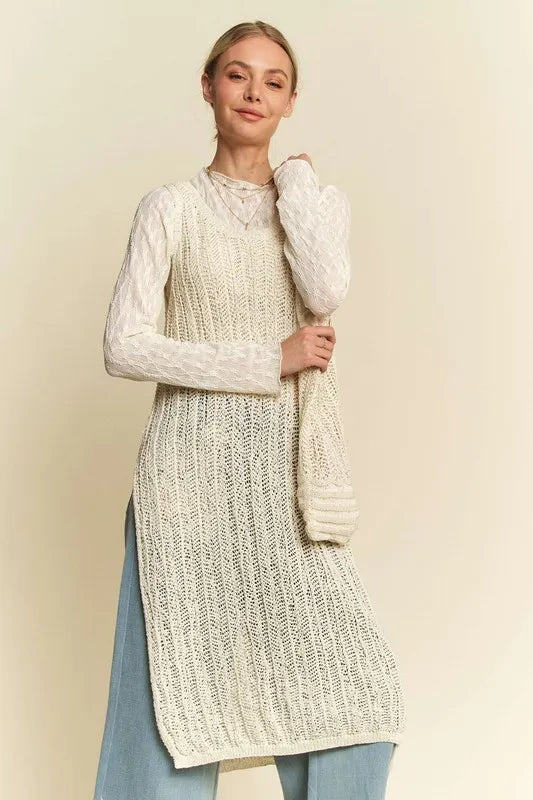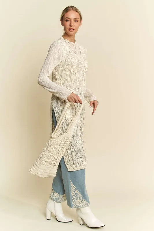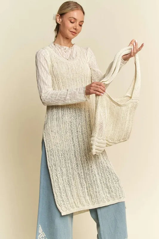 Davi & Dani Knit Side Slit Round Neck Sleeveless Dress & Bag - Beige / S está agotado y se enviará tan pronto como vuelva a estar disponible.