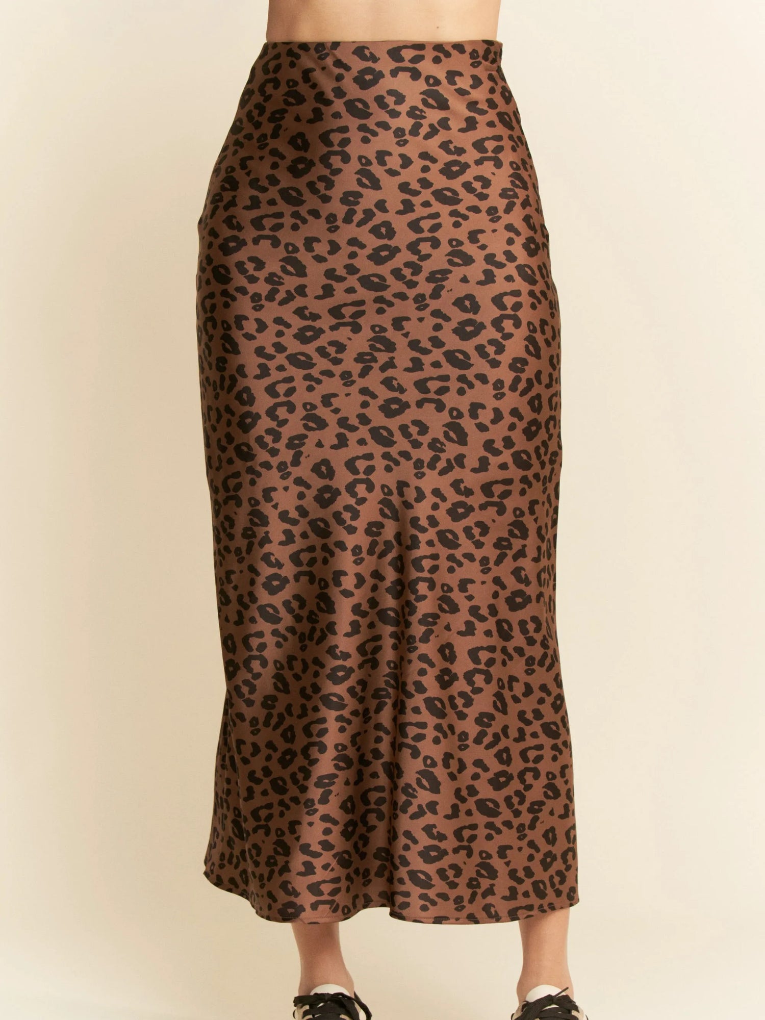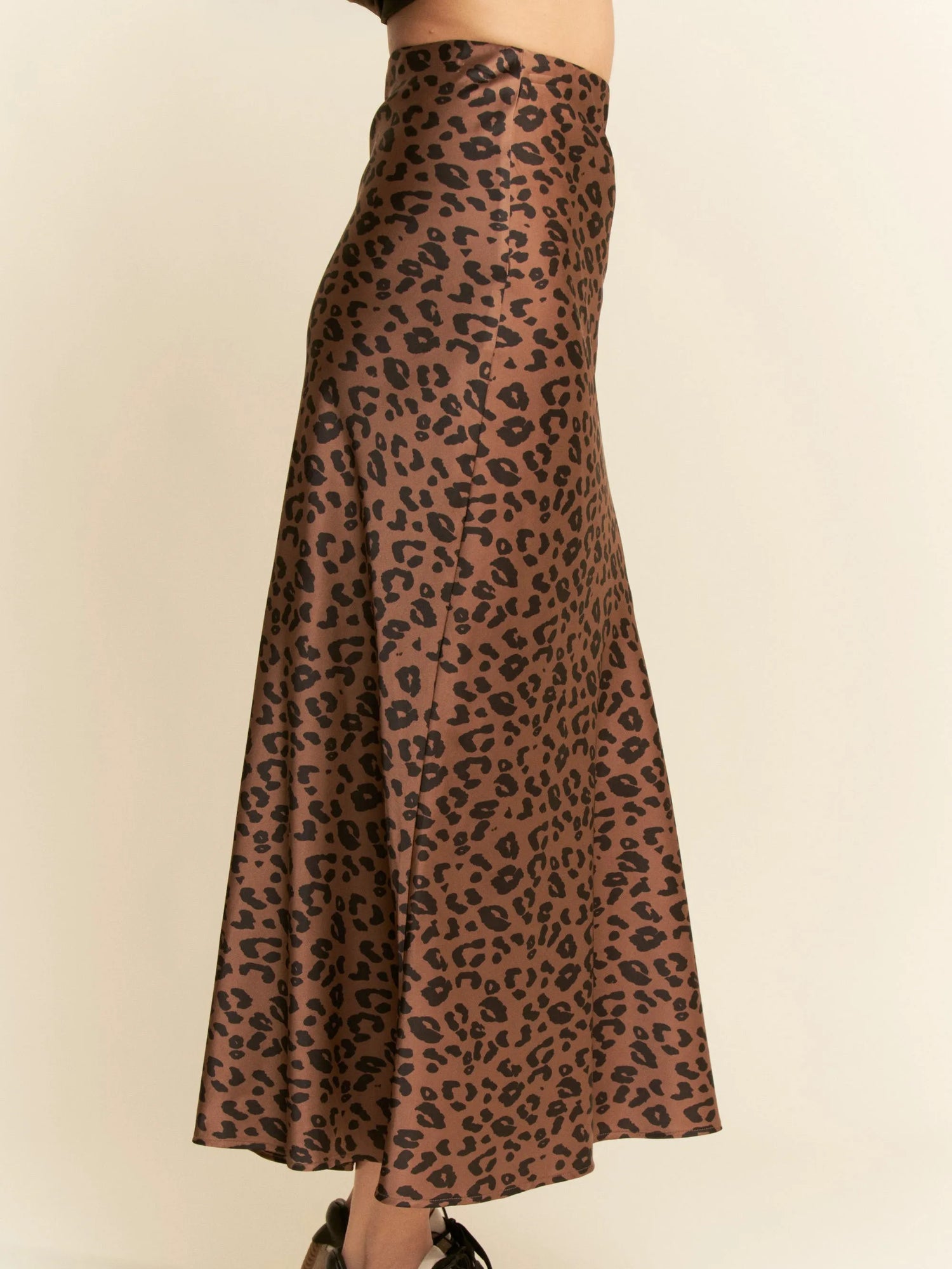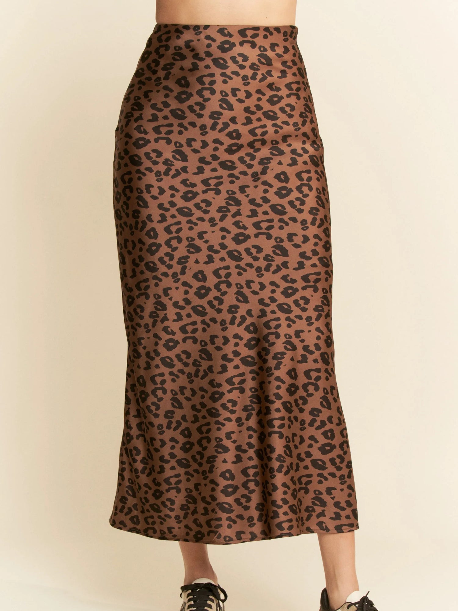 Davi & Dani Leopard Animal Print Long Length Skirt - BROWN / S está agotado y se enviará tan pronto como vuelva a estar disponible.