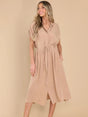 Drawstring Collared Neck Short Sleeve Midi Dress - Apricot / S está agotado y se enviará tan pronto como vuelva a estar disponible.