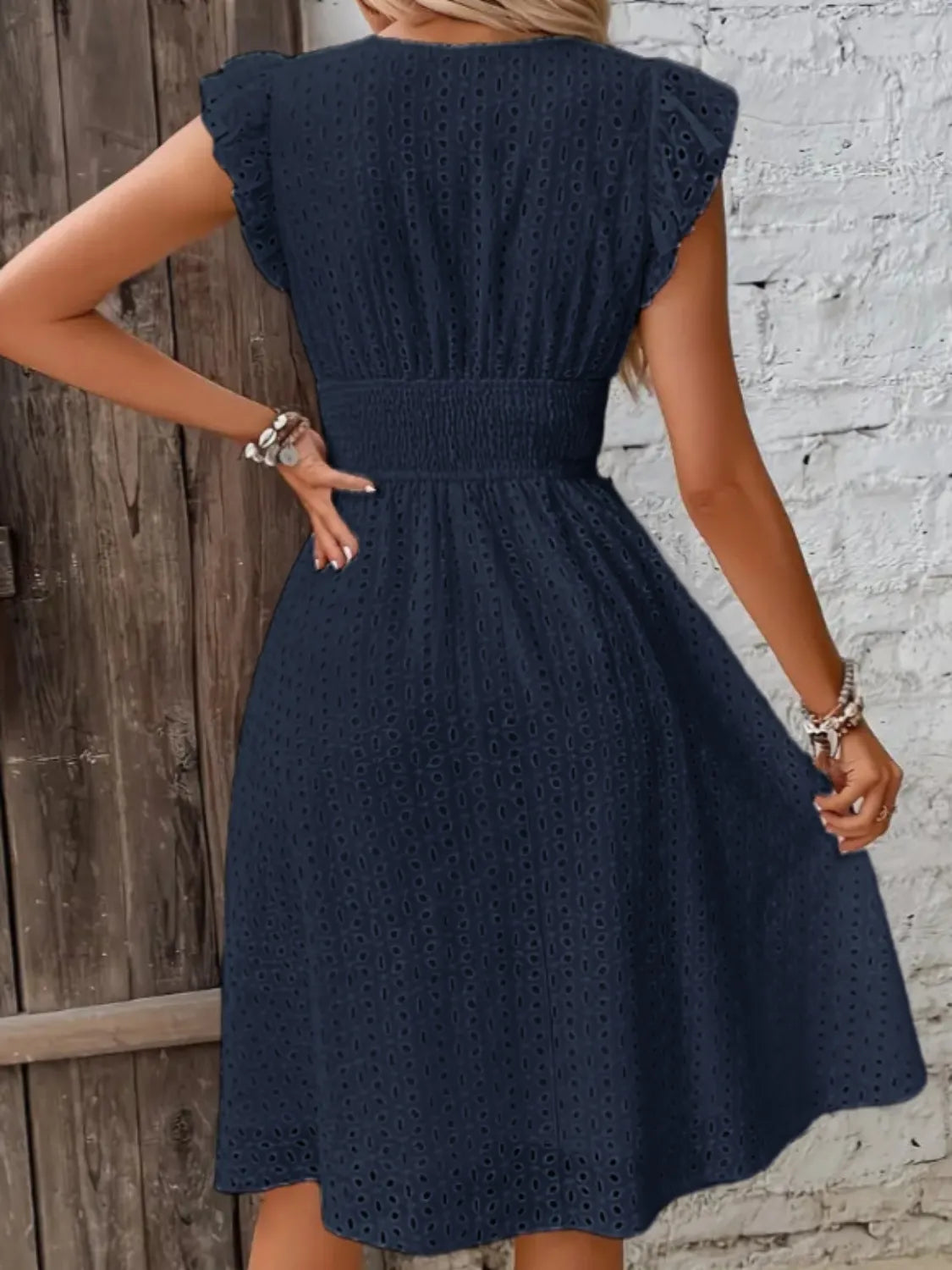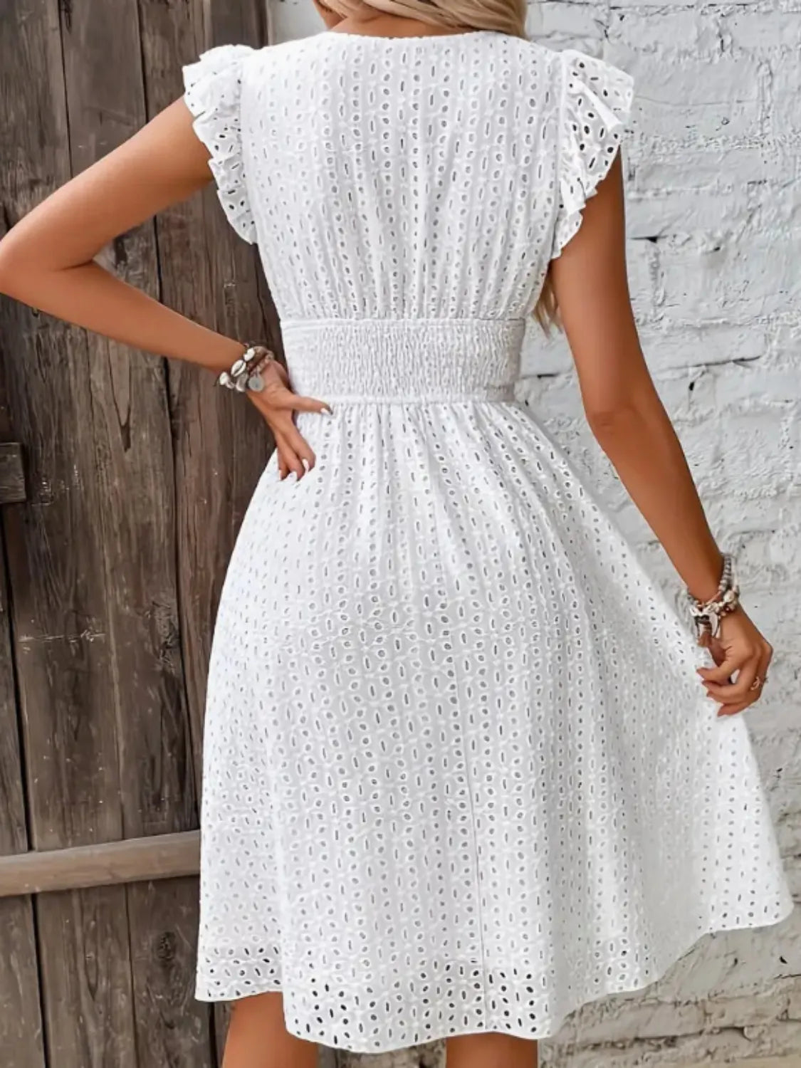 Eyelet Surplice Cap Sleeve Dress - White / S está agotado y se enviará tan pronto como vuelva a estar disponible.
