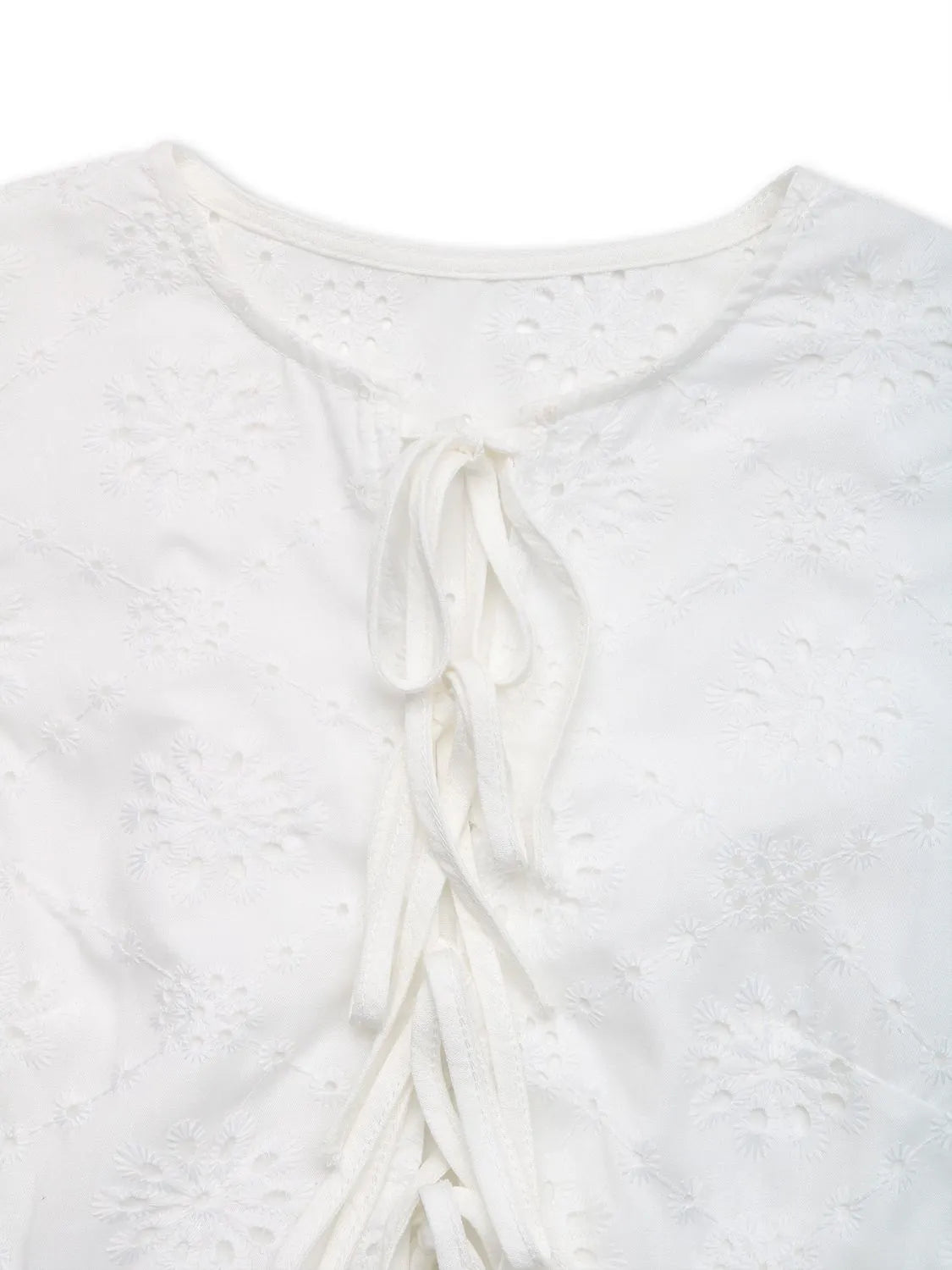 Eyelet Tie Front Sleeveless Mini Dress - White / S está agotado y se enviará tan pronto como vuelva a estar disponible.