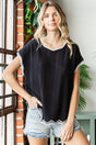 First Love Full Size Contrast Wavy Crochet Drop Shoulder Knit Top - Black / M está agotado y se enviará tan pronto como vuelva a estar disponible.