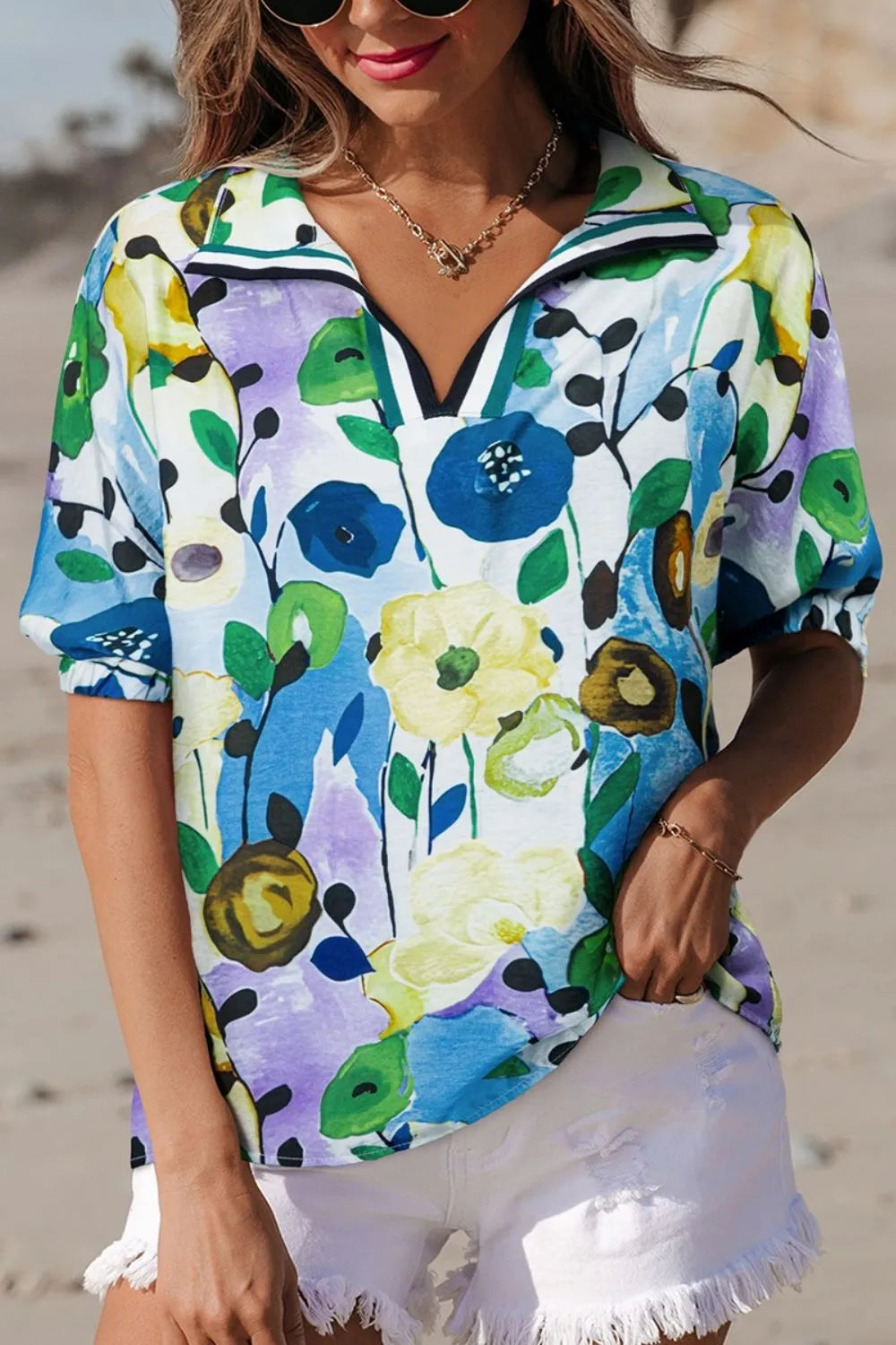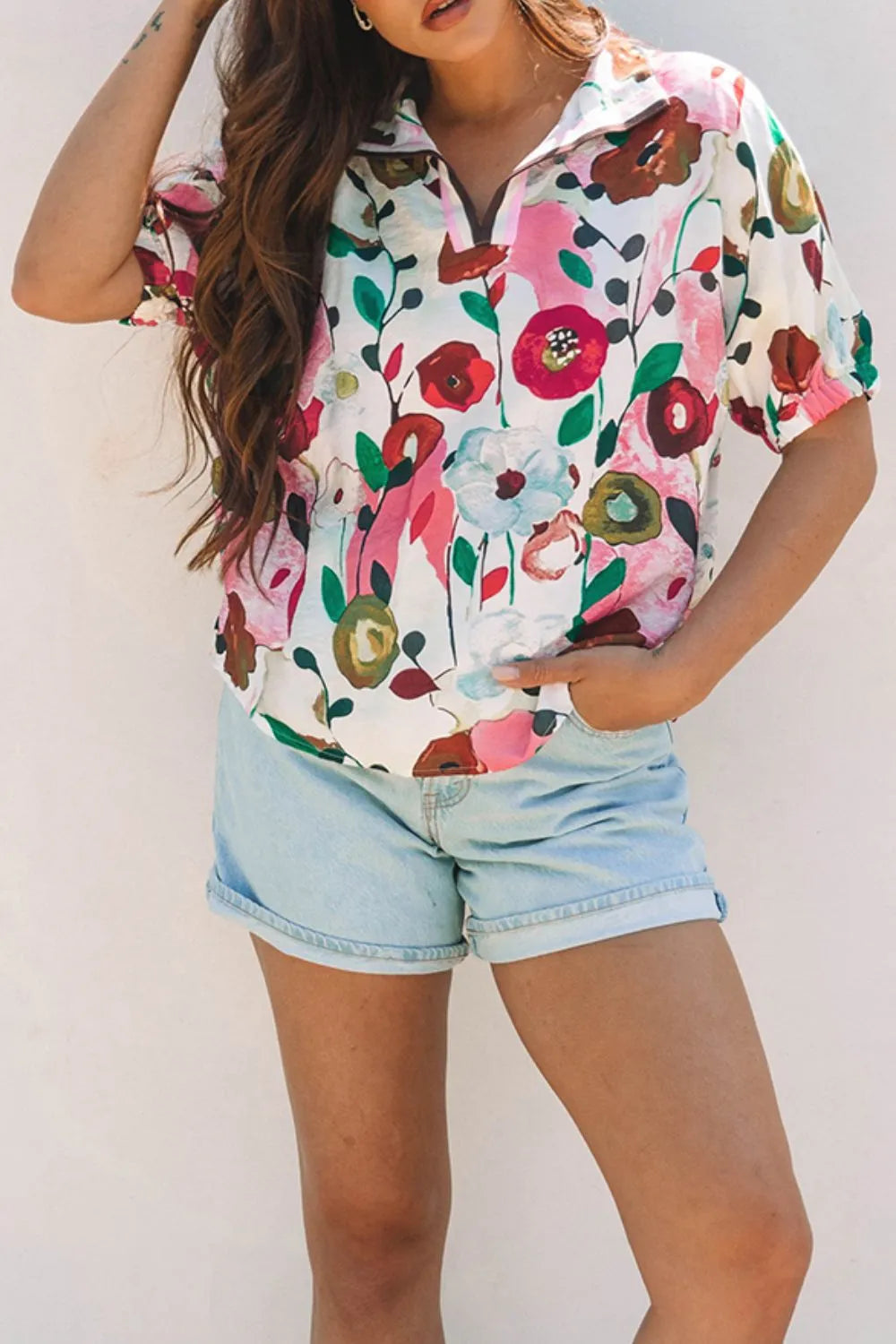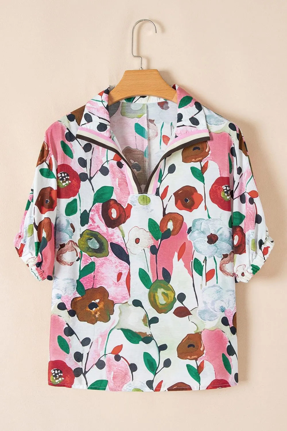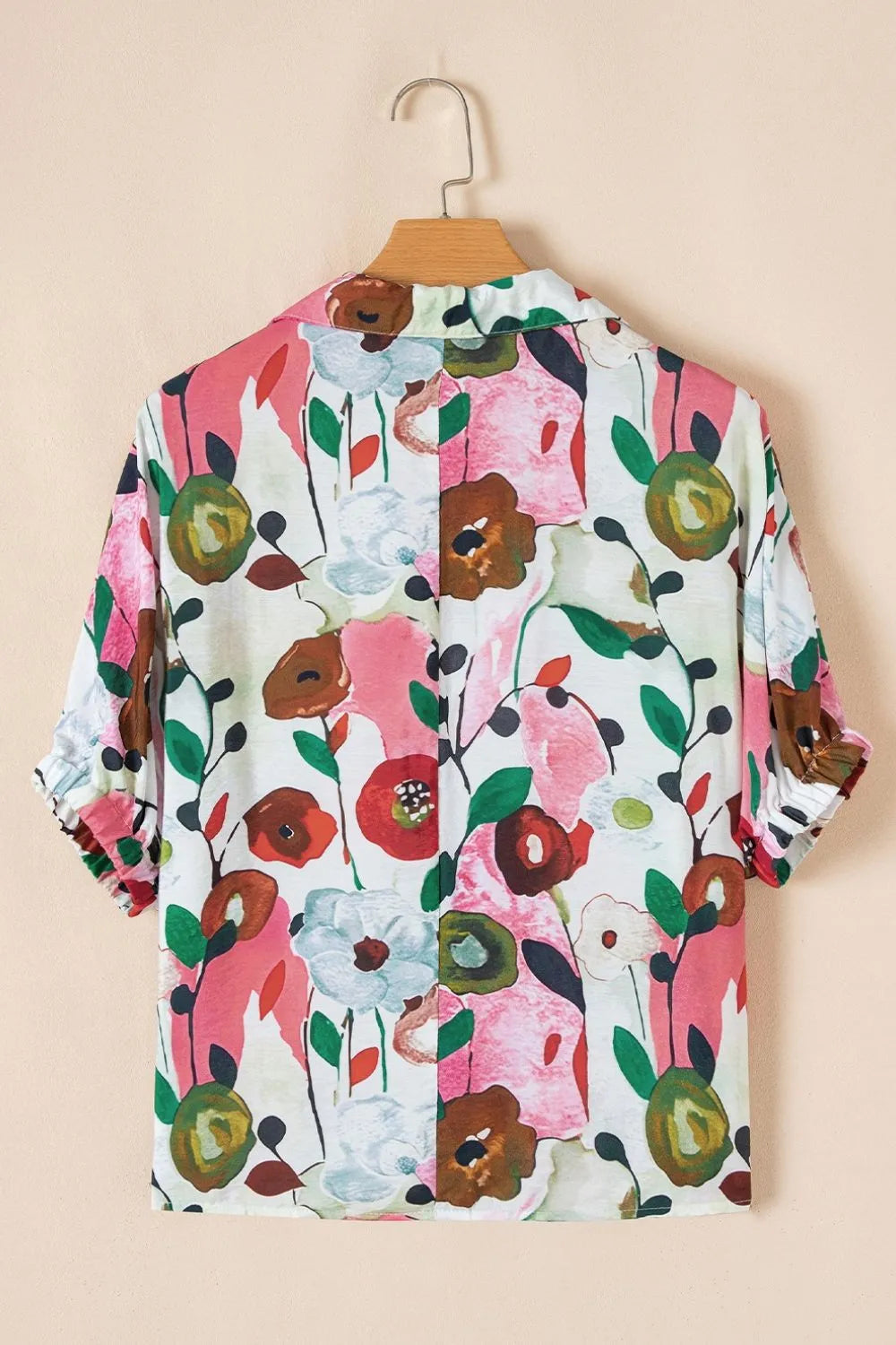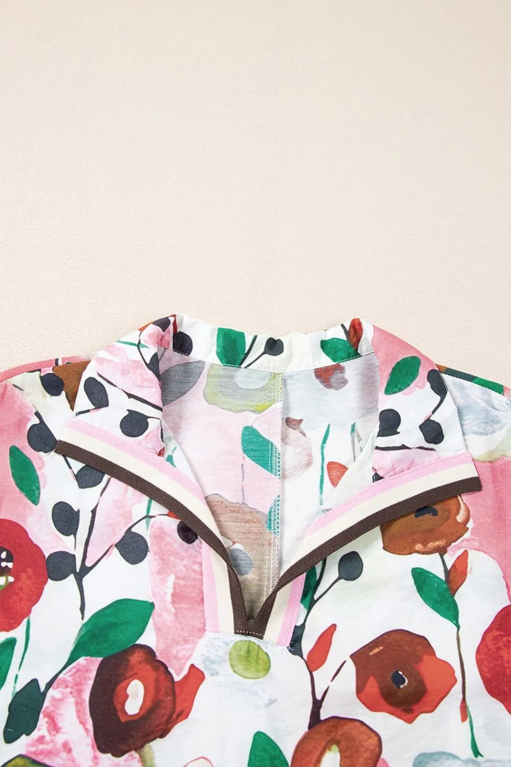 Floral Print Short Sleeve Blouse - Dusty Pink / S está agotado y se enviará tan pronto como vuelva a estar disponible.