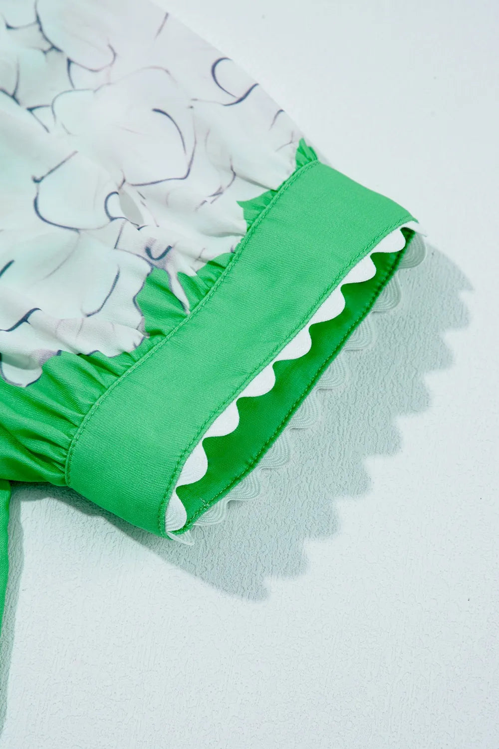 Floral Ric Rac Edge Puff Sleeve Button Up Summer Shirt - Green / S está agotado y se enviará tan pronto como vuelva a estar disponible.