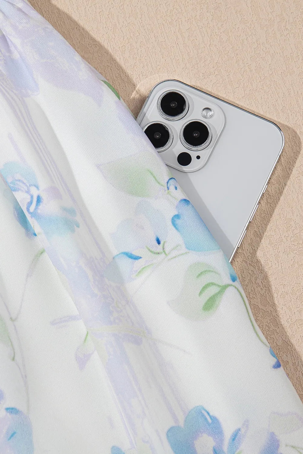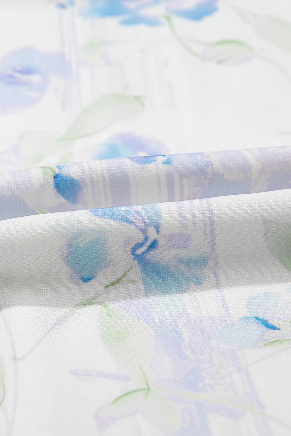 Floral Smocked High Waist Double Ruffle Sleeveless Long Dress - Light Blue / S está agotado y se enviará tan pronto como vuelva a estar disponible.