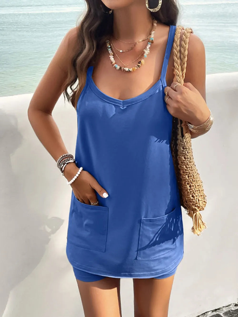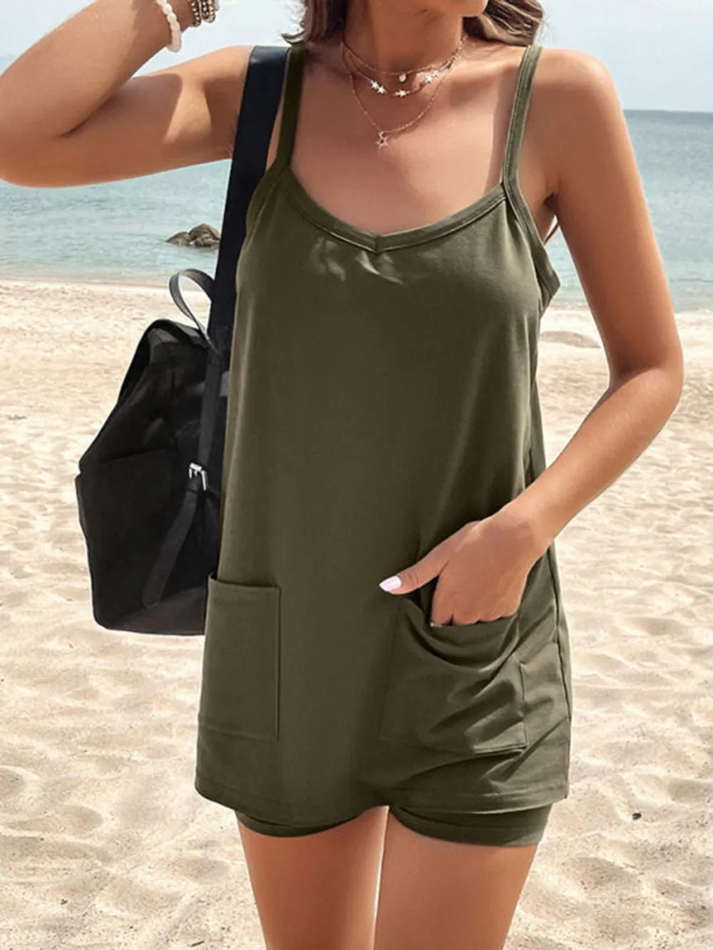 Full Size Pocketed Cami and Shorts Set - Army Green / S está agotado y se enviará tan pronto como vuelva a estar disponible.