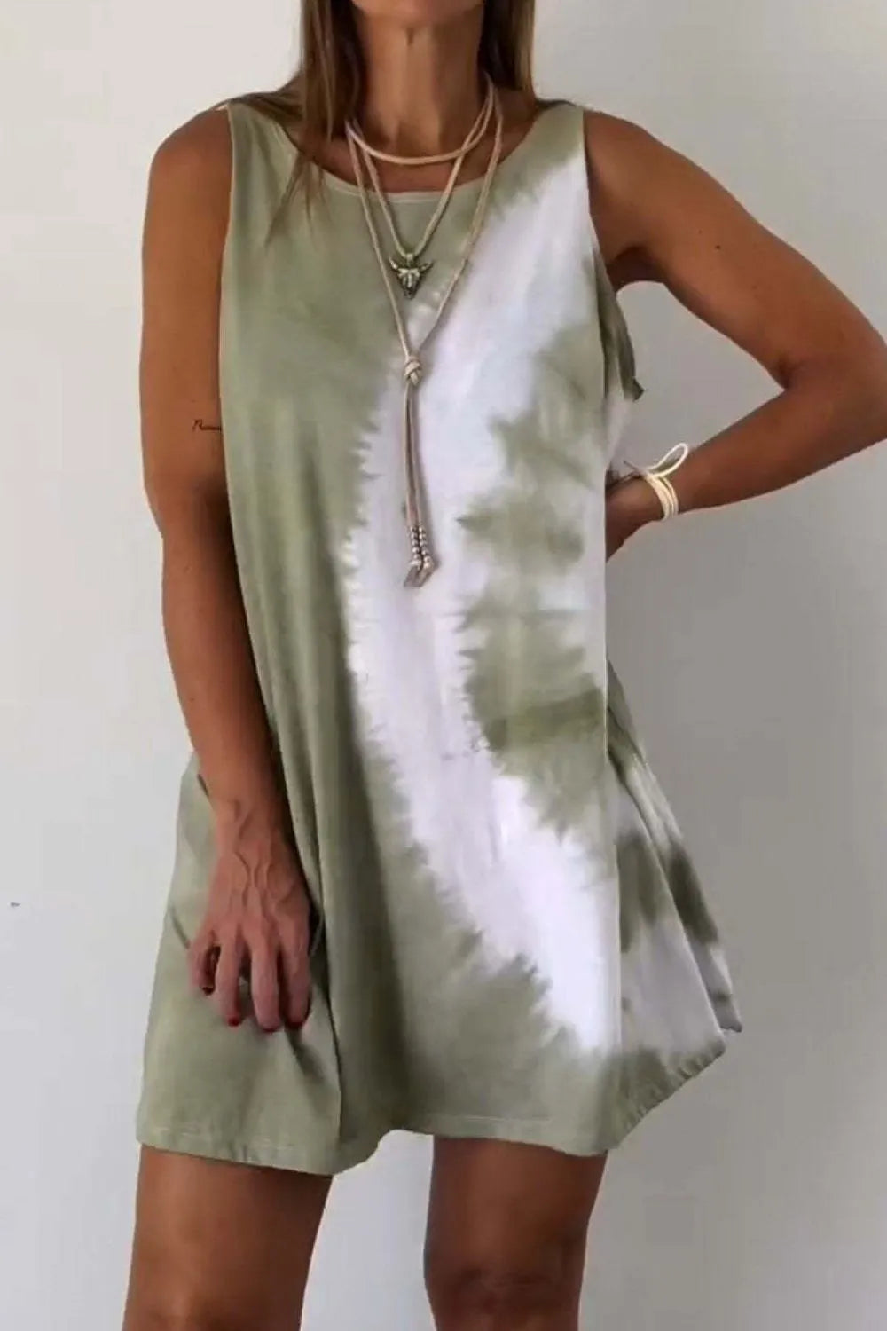 Full Size Tie-Dye Sleeveless Mini Tank Dress Plus Size