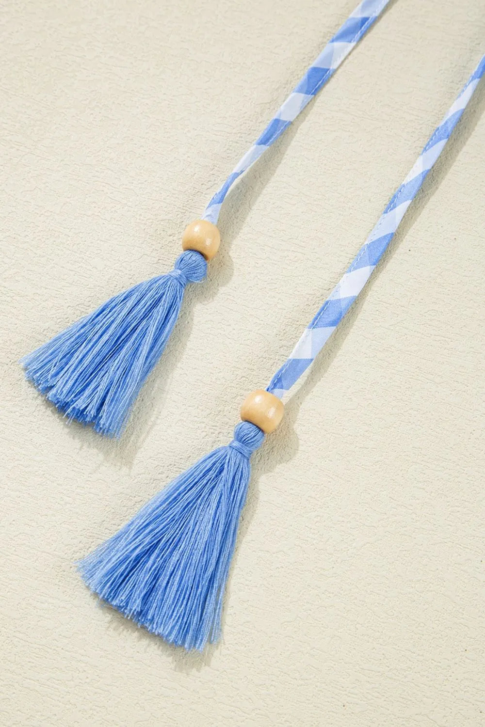 Gingham Short Sleeve Button Tie Split Neck Loose Mini Dress - Light Blue / S está agotado y se enviará tan pronto como vuelva a estar disponible.