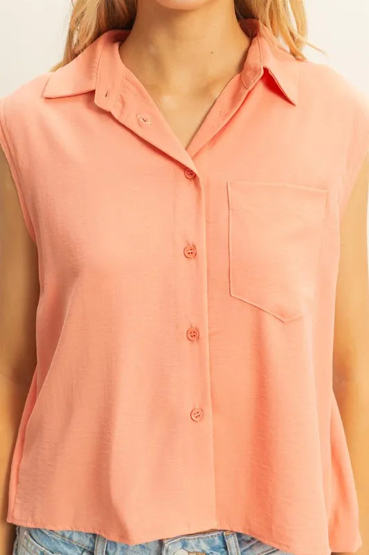 HYFVE Buttoned Front Sleeveless Collar Shirt