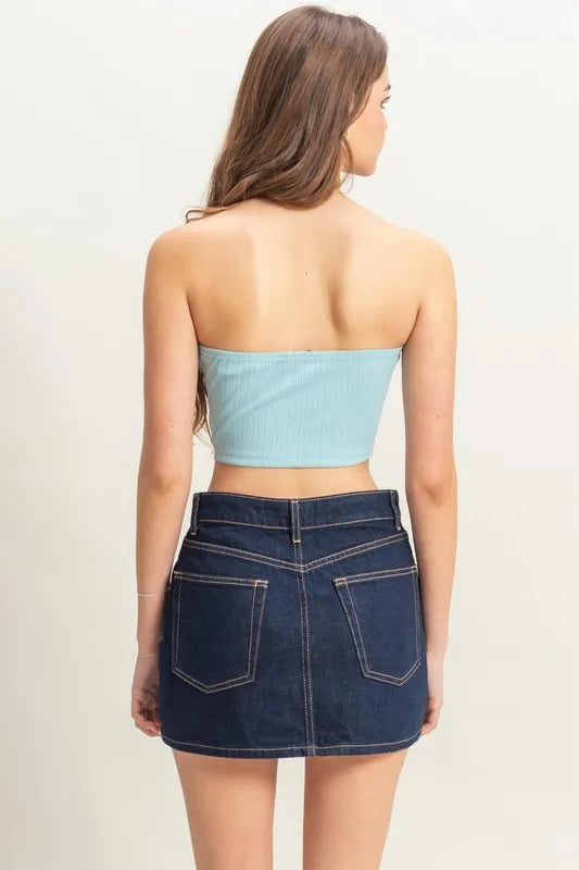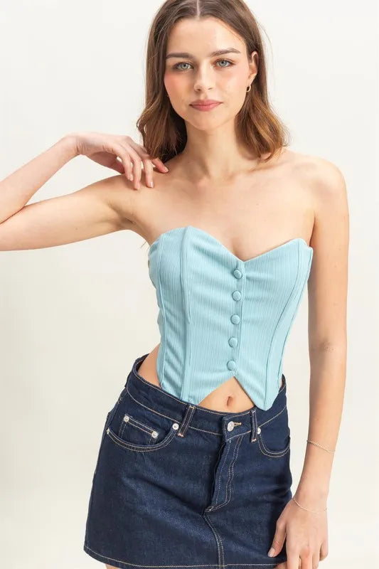 HYFVE Buttoned Front Strapless Knit Bustier Top