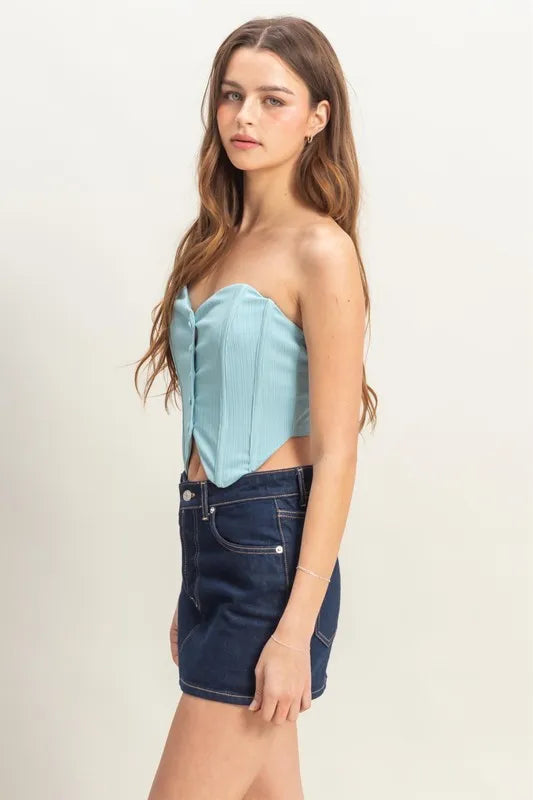 HYFVE Buttoned Front Strapless Knit Bustier Top - AQUA / S está agotado y se enviará tan pronto como vuelva a estar disponible.