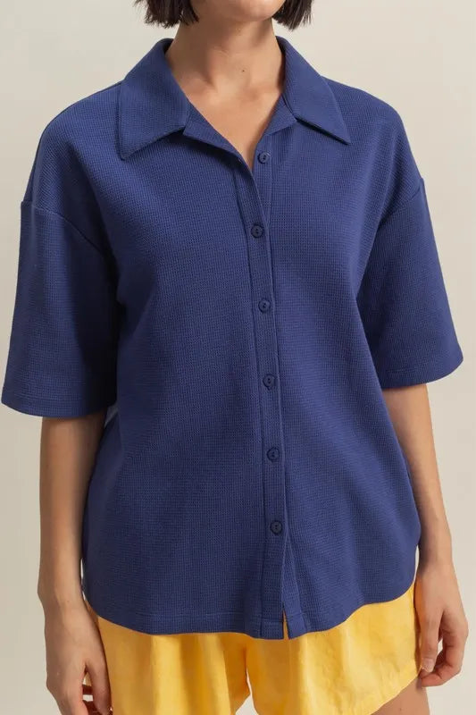 HYFVE Collared Neck Button Down Waffle Shirt