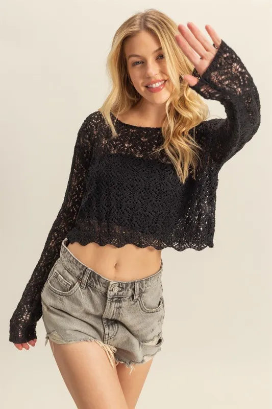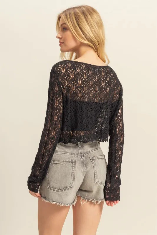 HYFVE Crochet Round Neck Cropped Knit Cover Up - Black / L está agotado y se enviará tan pronto como vuelva a estar disponible.